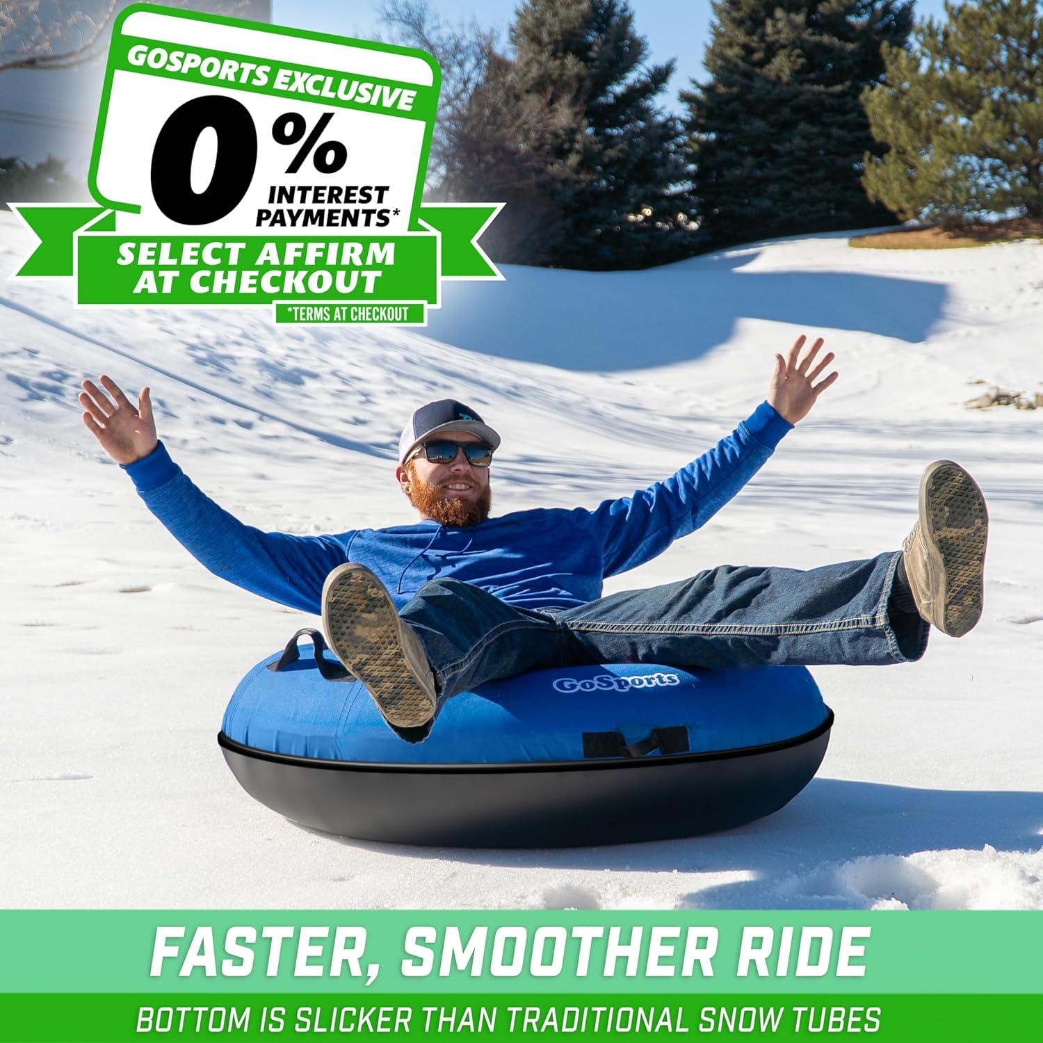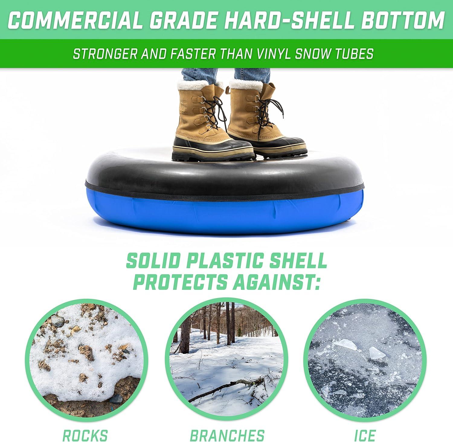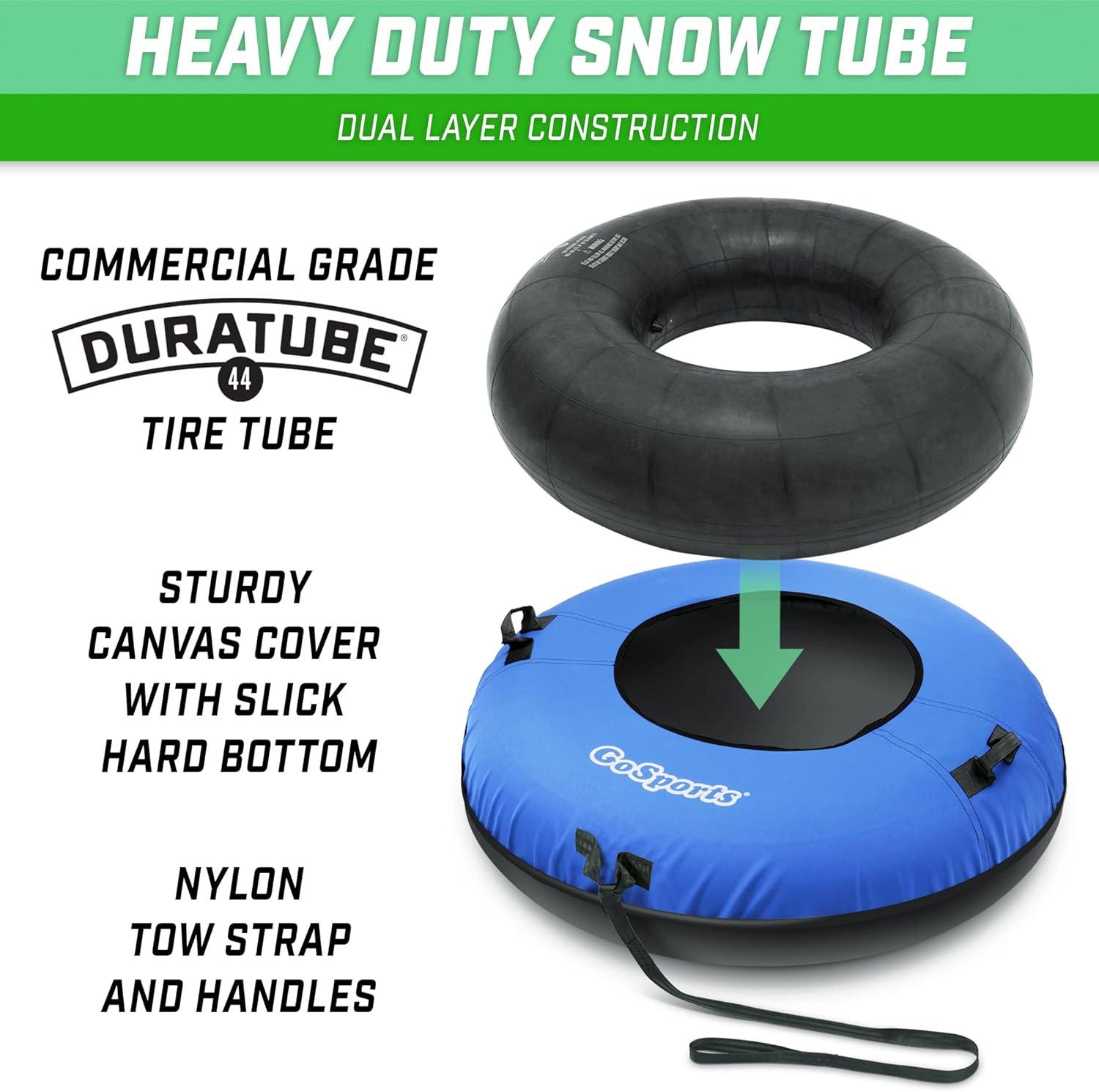 GoSports 40 Inch Hard Bottom Snow Tube with Premium Canvas Cover – 40″ Commercial Grade Sled – Red or Blue(Blue)