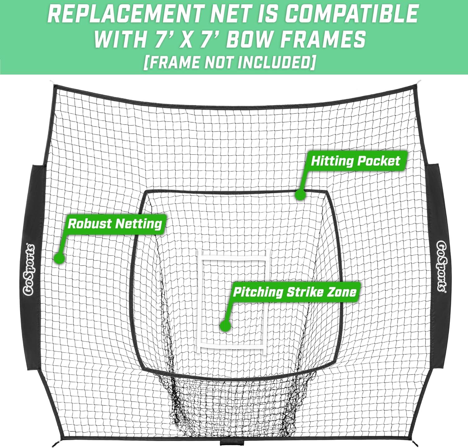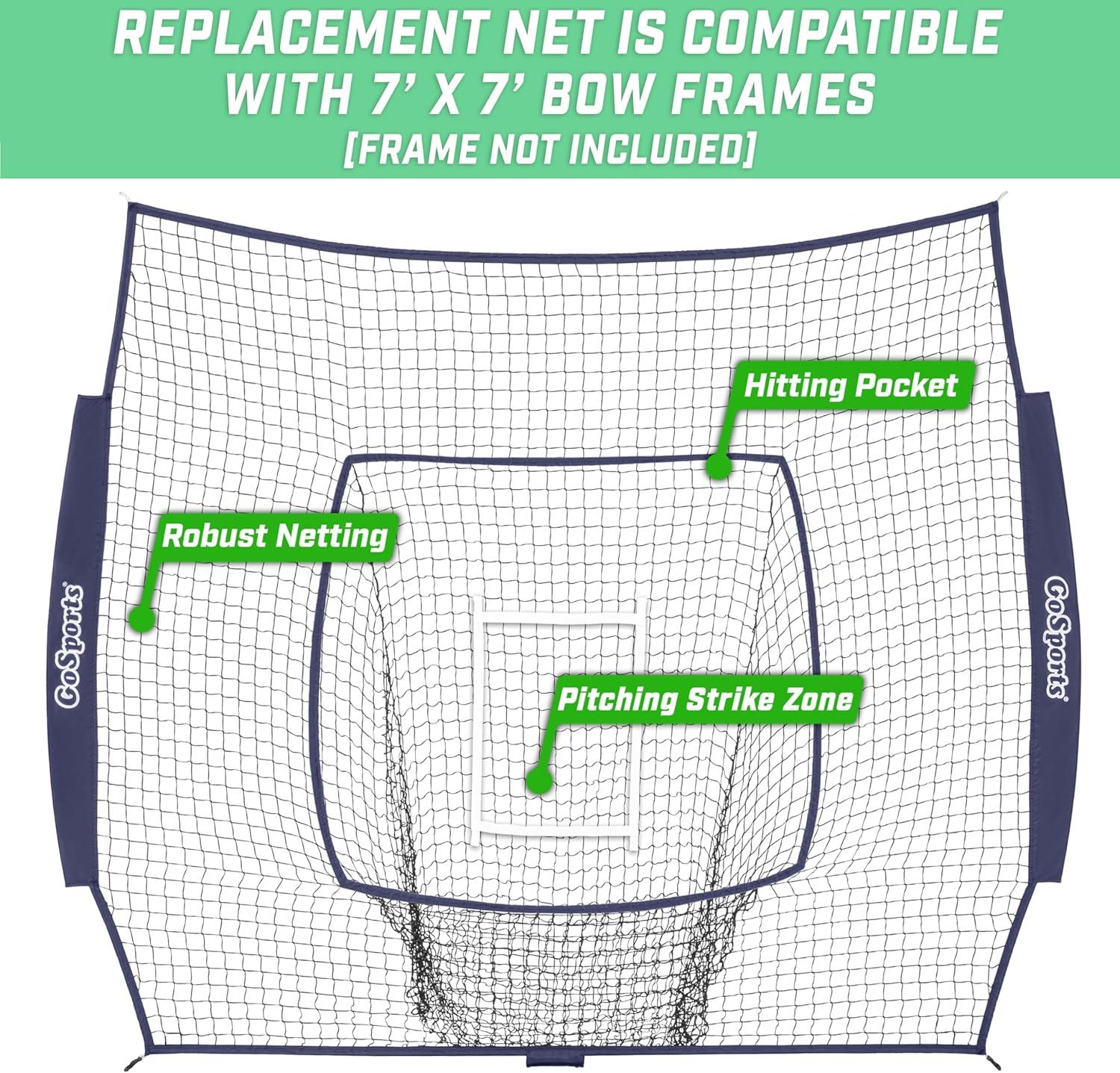 GoSports Replacement 7 x 7 ft Baseball Net – NET ONLY – Frame NOT Included – Choose Your Color(Black)