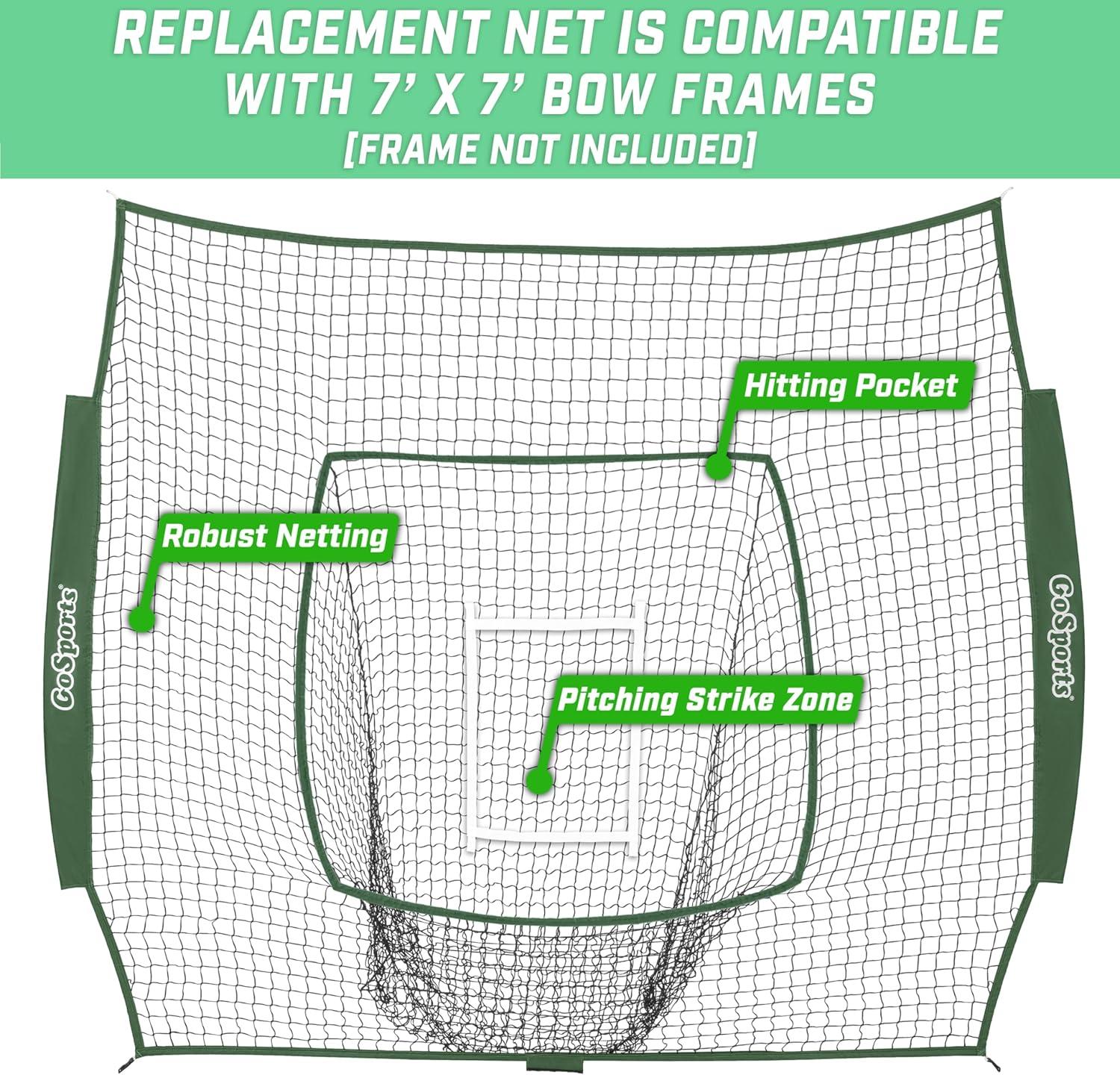 GoSports Replacement 7 x 7 ft Baseball Net – NET ONLY – Frame NOT Included – Choose Your Color(Green)