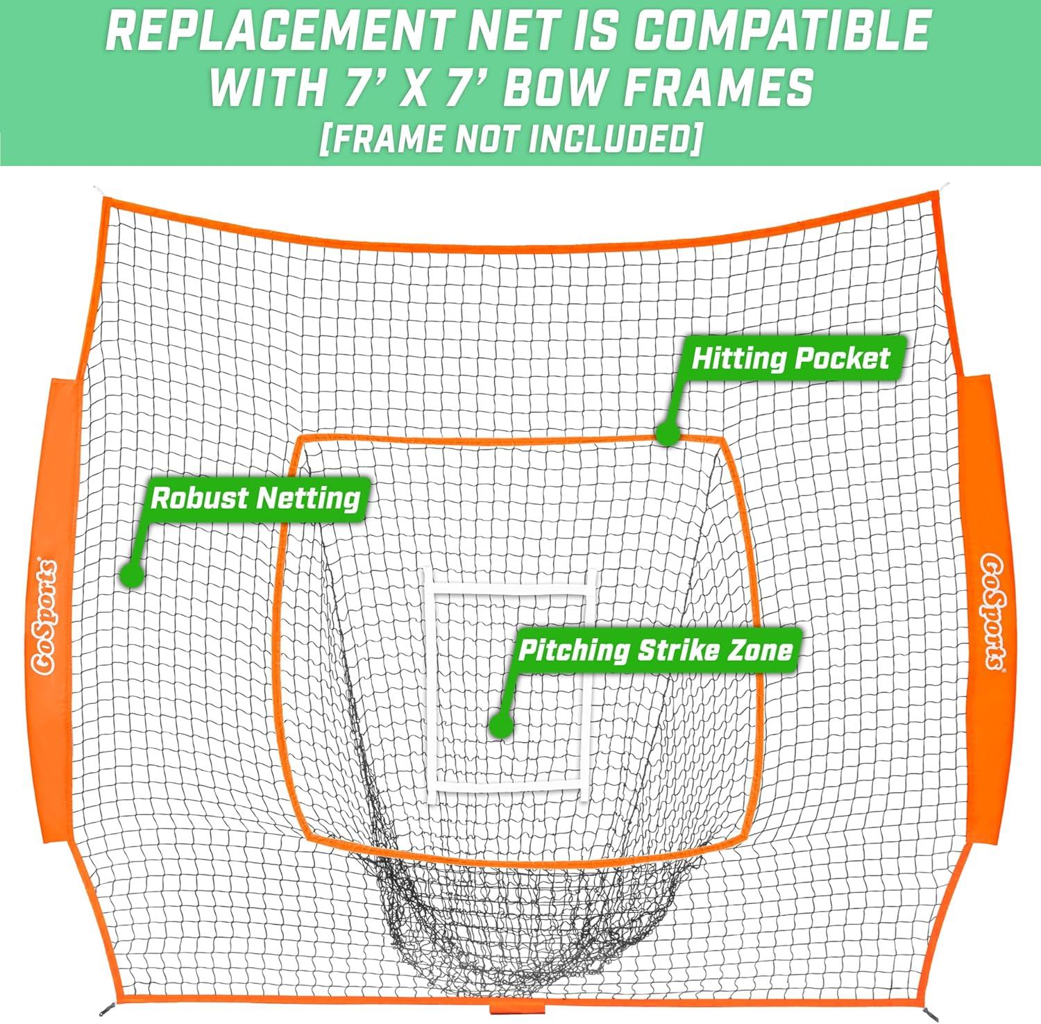 GoSports Replacement 7 x 7 ft Baseball Net – NET ONLY – Frame NOT Included – Choose Your Color(Orange)