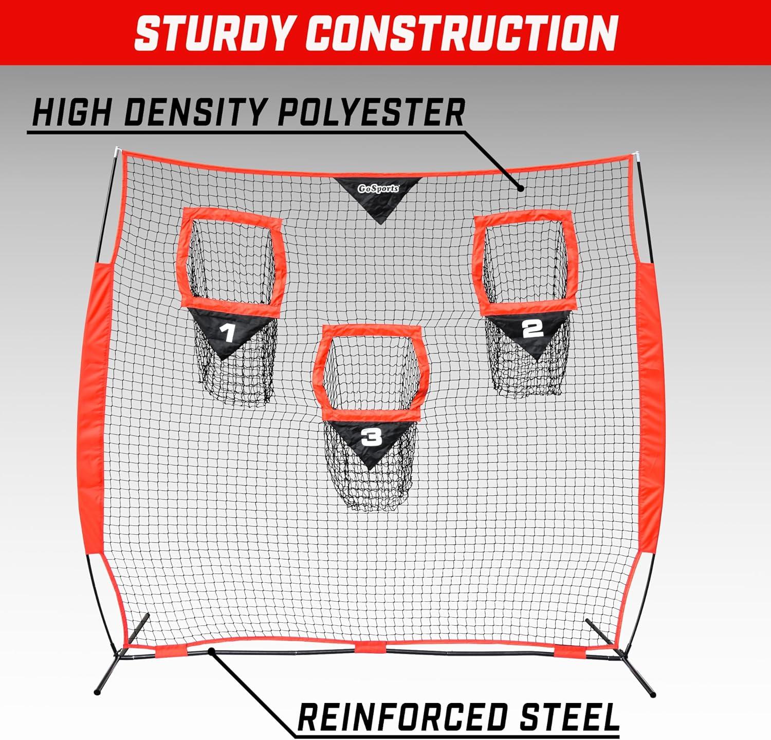 GoSports Football Throwing Net – 8 x 8 ft or 6 x 6 ft Nets – Choose Black or Red(8 x 8 ft Red)