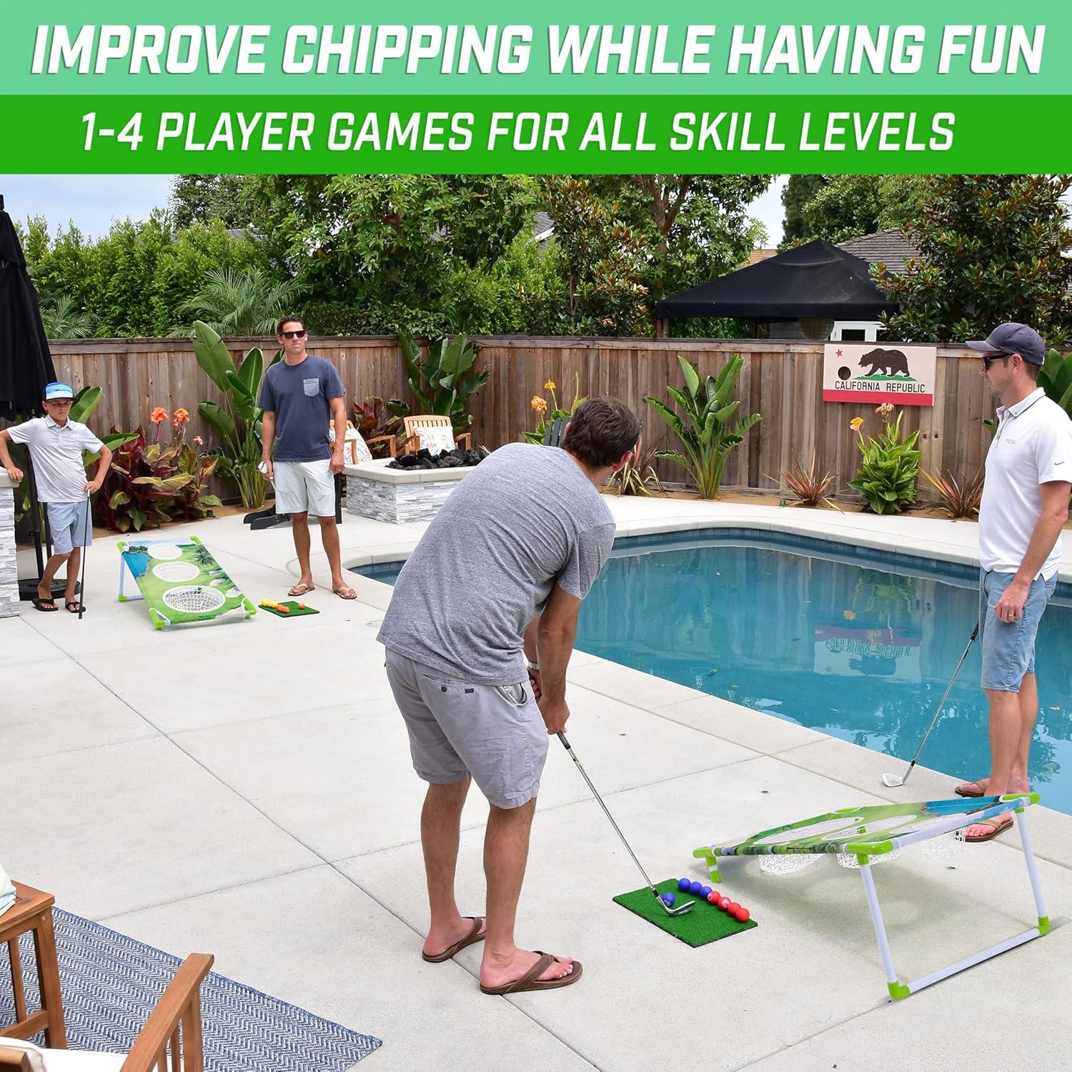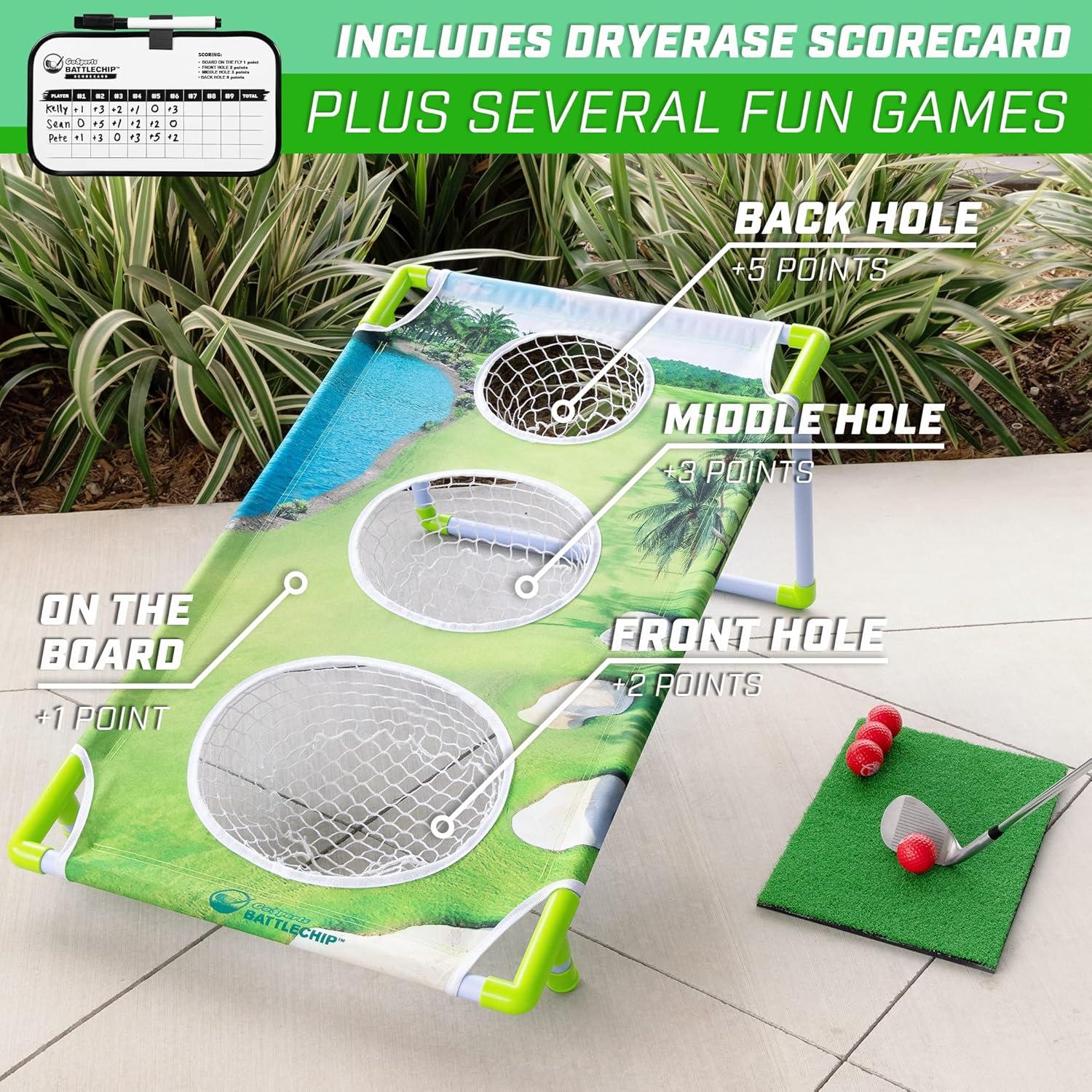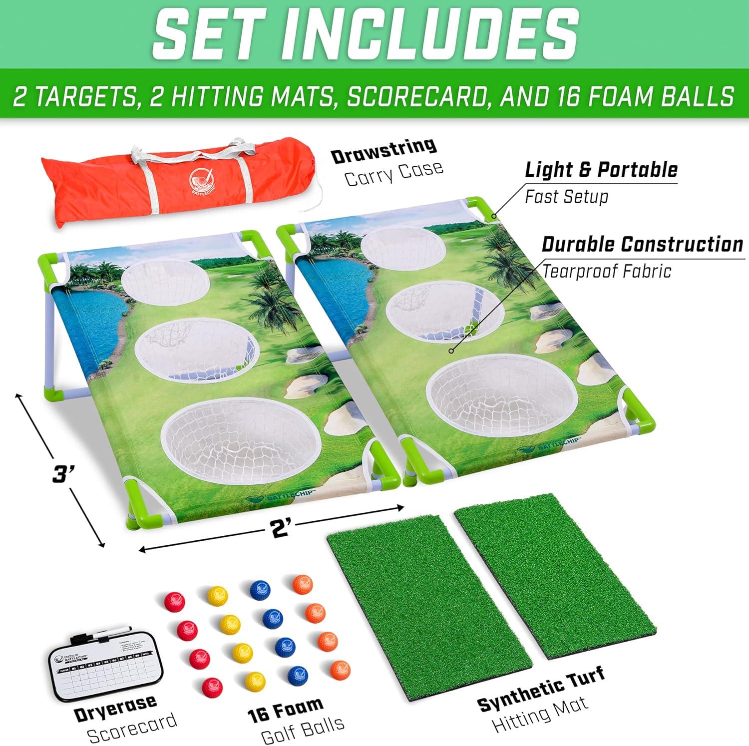 GoSports BattleChip Tour Backyard Golf Cornhole Game – Includes 2 Targets, 2 Chipping Mats, 16 Foam Golf Balls, Scorecard and Carry Case