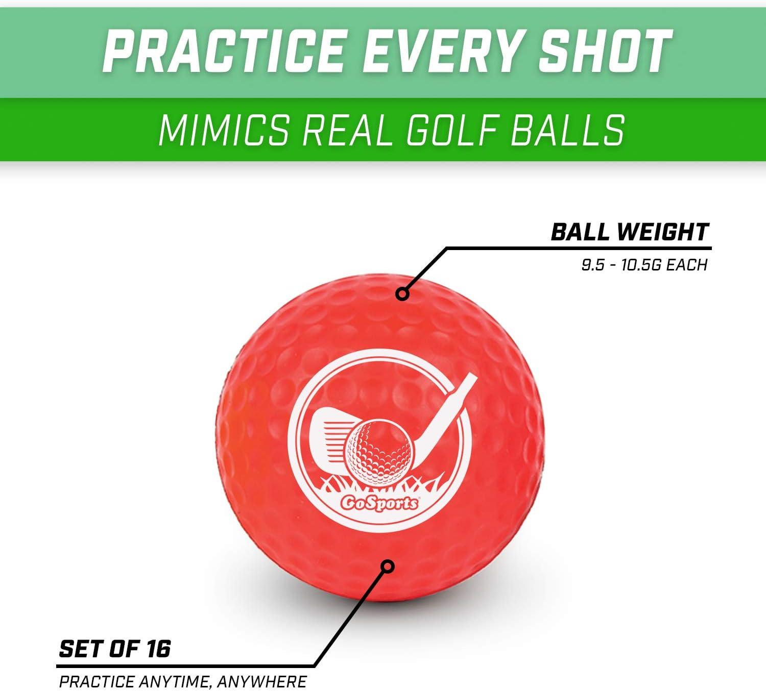 GoSports Foam Golf Practice Balls Realistic Feel and Limited Flight Use Indoors or Outdoors(16 Count (Pack of 1))