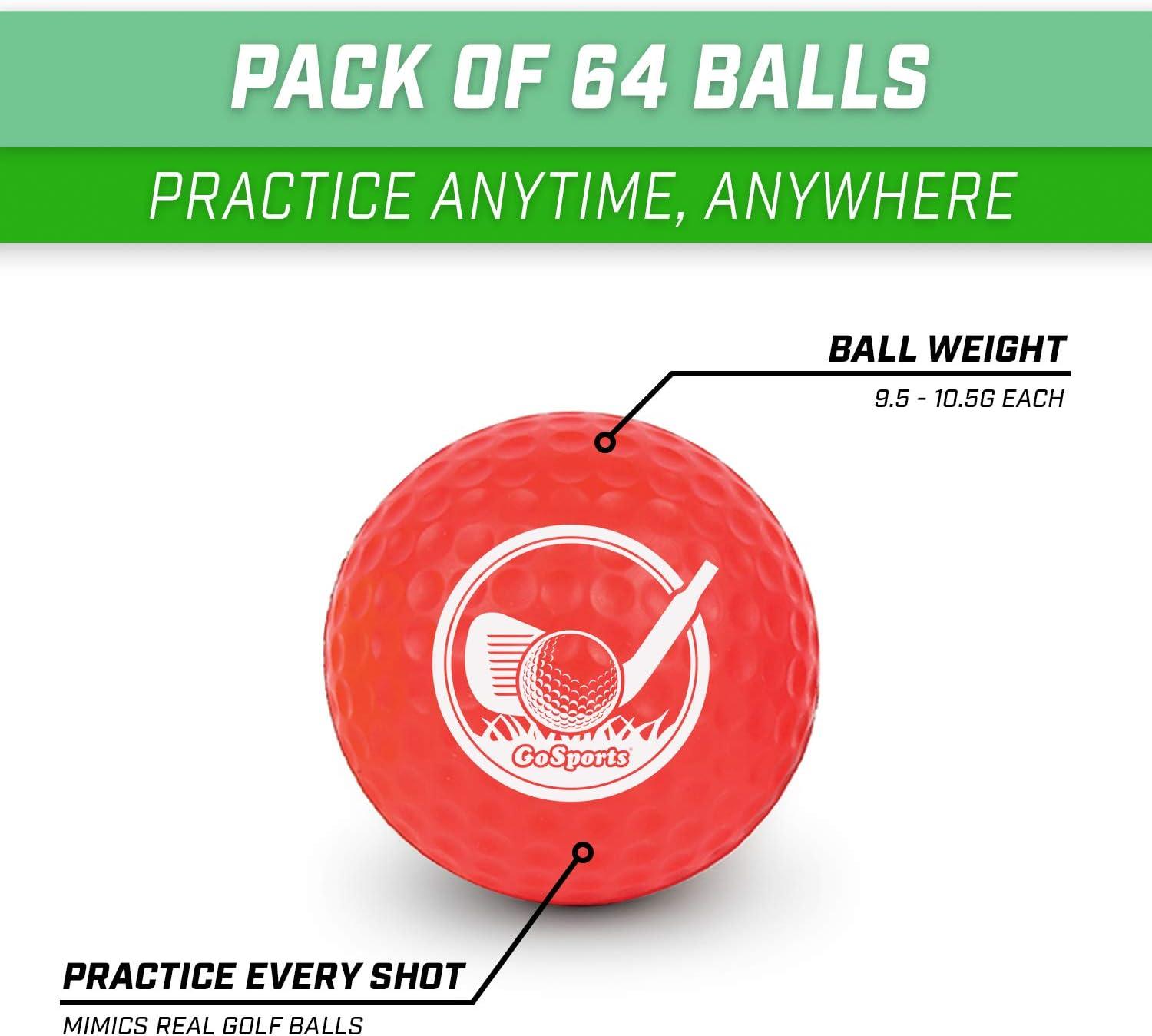 GoSports Foam Golf Practice Balls Realistic Feel and Limited Flight Use Indoors or Outdoors(64 Pack)