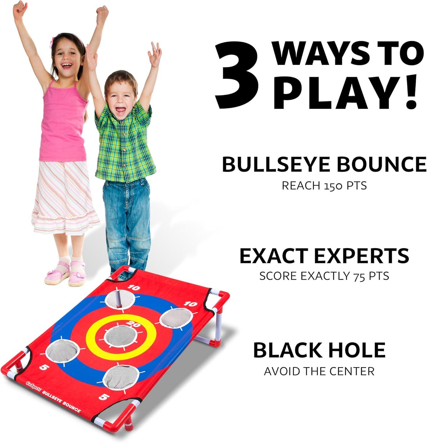 CORNHOLE WITH A TWIST: A new and exciting take on classic bean bag toss; 2 – 4 players compete to rack up points with multiple scoring holes and a fun bouncy surface in this creative new play style everyone can enjoy