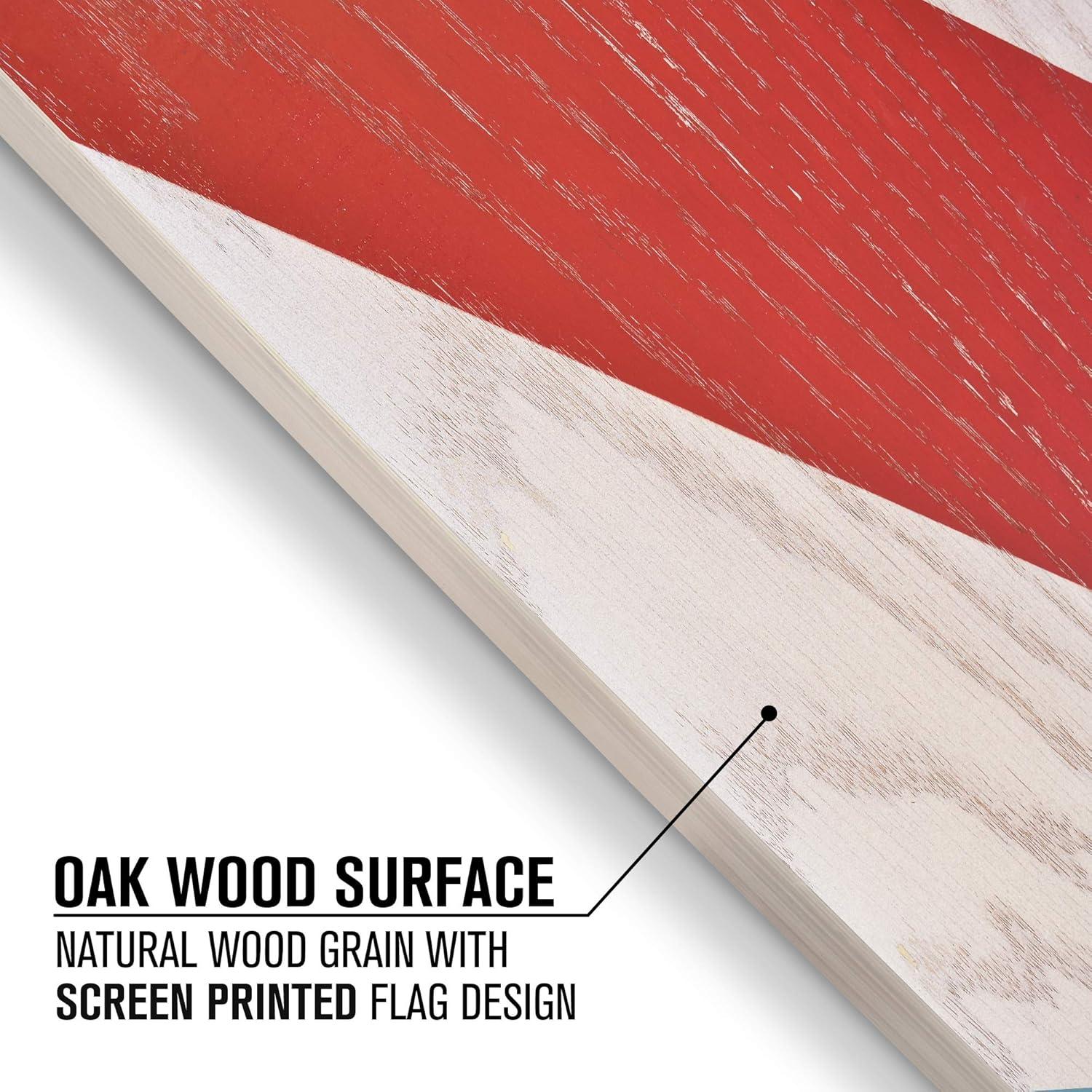 100% SOLID WOOD: Premium handcrafted boards with oak surfaces, varnished with American Flag graphics that allow the wood grain to show through