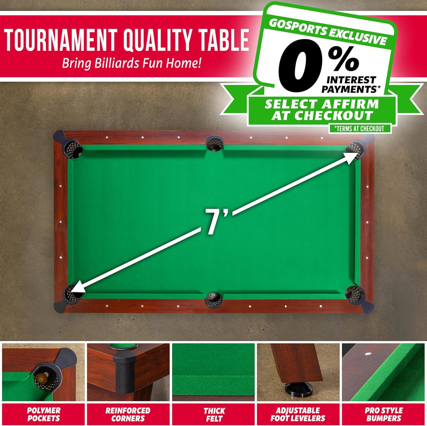 GoSports 7 ft Pool Tables with Wood Finish – Gray or Green Felt – Billiards Game Room Table for Adults & Family – Accessories Not Included(Green)