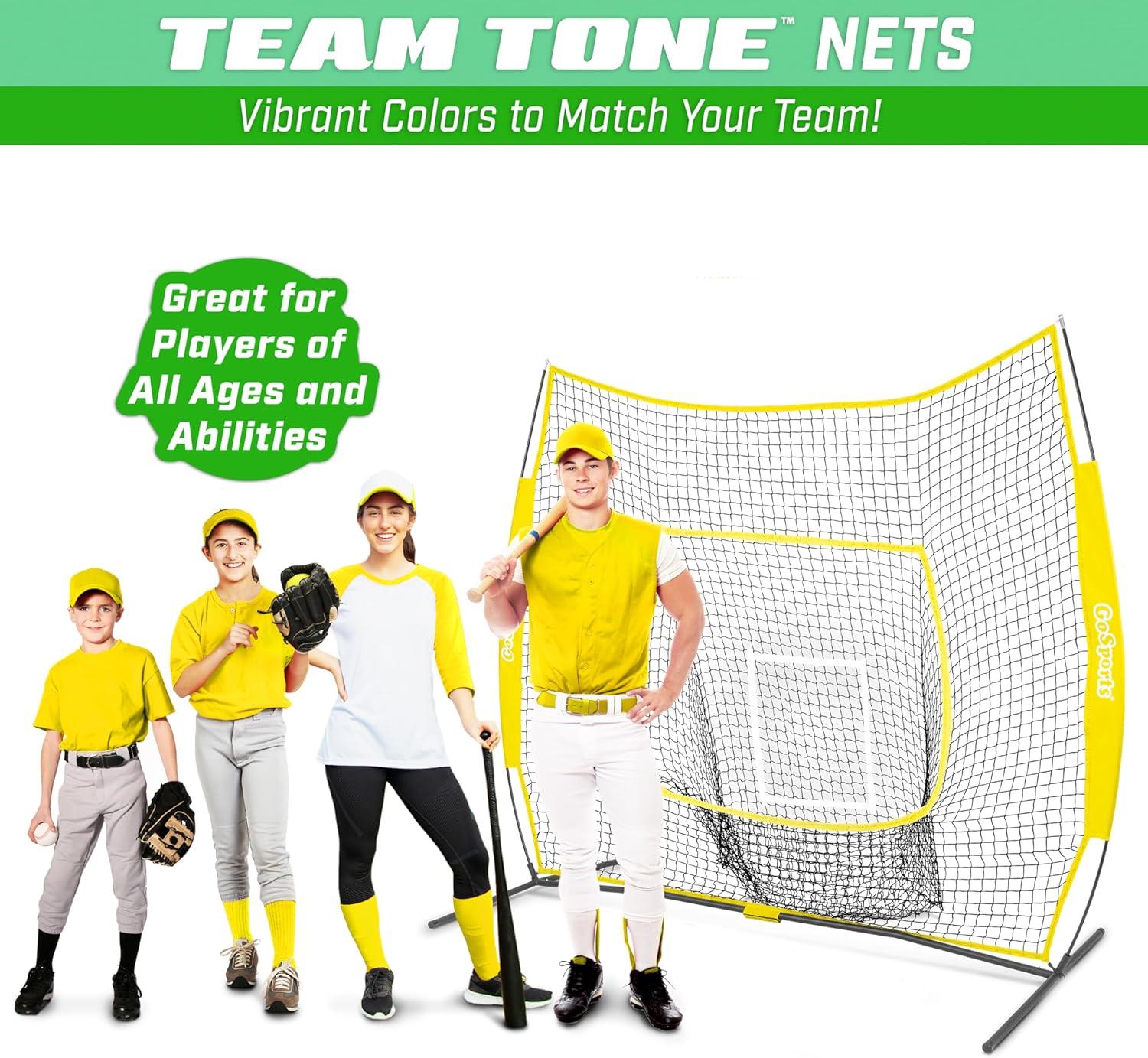 GoSports 7 x 7 ft Baseball & Softball Nets – Available in Team Colors – Batting & Pitching Net with Strike Zone(Yellow)