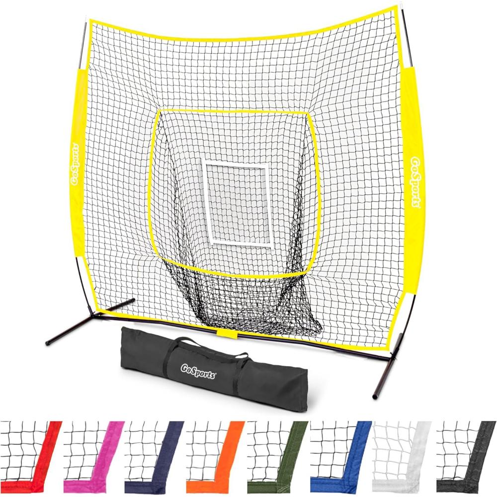 GoSports ELITE Baseball and Softball Net is our highest grade hitting and pitching net yet! Made from ultra strong, powder-coated steel and extra thick netting, the 7 ft x 7 ft net is the premier training aid for players of all abilities. Use it for batting practice, pitching drills, fielding, catching, and backstop use. Attach the supplemental net to the front to defend against high speed balls and easily retrieve them from the bottom catch pocket. We've also included a strike zone attachment for precision pitching. Set up and break down the entire net in minutes and store in the included carrying case. Upgrade your training net today with GoSports ELITE Baseball and Softball Net!.