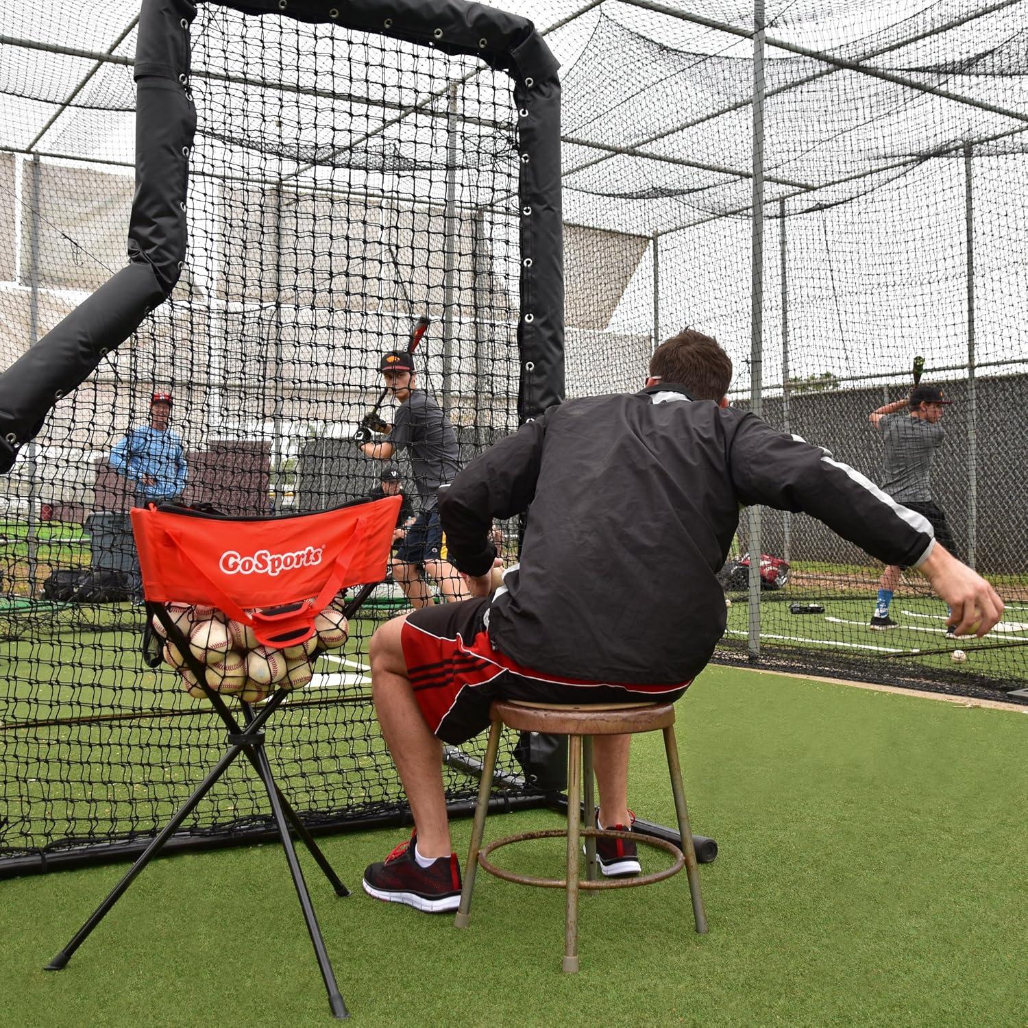 COACH FAVORITE: Comes in handy for practice pitching, batting, fielding, and tee ball; holds over 3 dozen baseballs and 2 dozen softballs