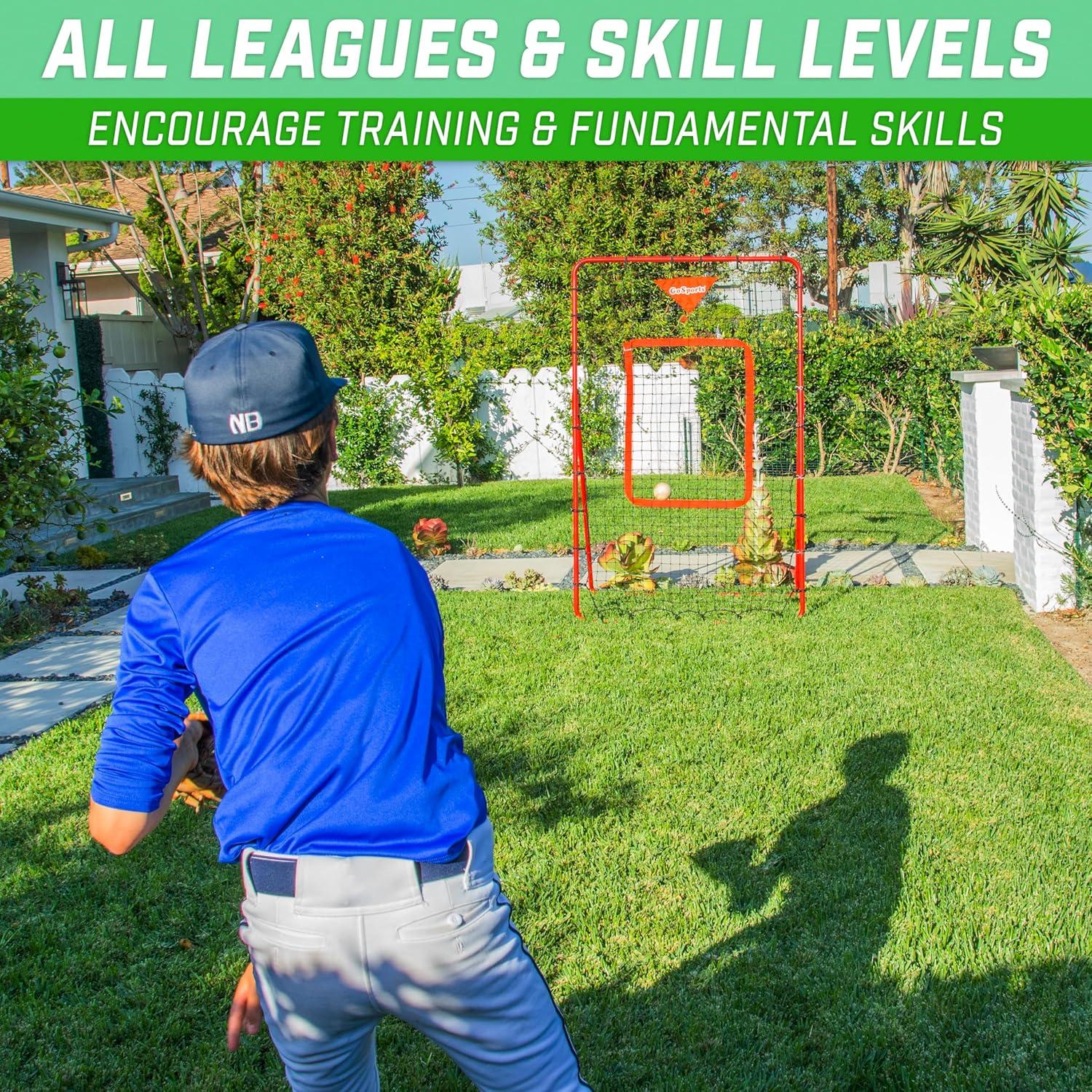 GoSports Baseball & Softball Pitching and Fielding Rebounder – Pitch Back Net – Choose Your Size(Red)