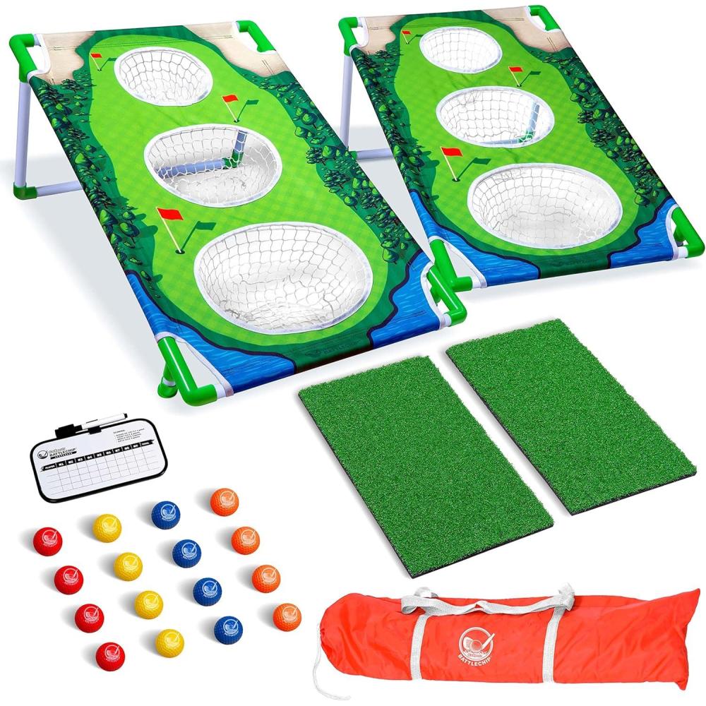 GoSports BattleChip Backyard Golf Cornhole Games – Includes Targets, Chipping Mats, Foam Golf Balls, Scorecard and Carry Case(Green)