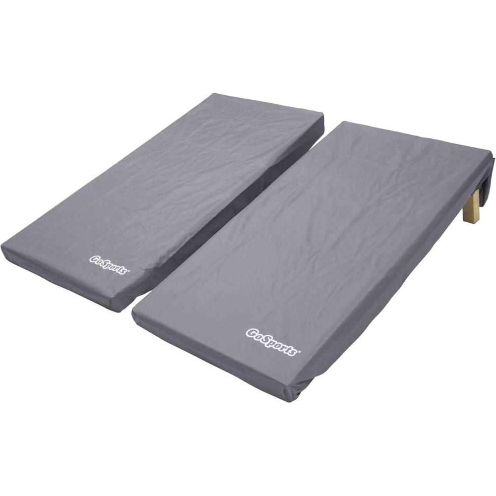 The GoSports cornhole covers were designed to provide a way to protect cornhole boards without the hassle of packing them up and bringing them inside after each use. The covers provide UV protection as well was a waterproof barrier to keep your boards safe from the elements. Each cover has a cinch cord around the edges to securely wrap around your boards. The set includes 2 covers, one cover has pockets on the end to hold 8 full size bean bags. While the covers do protect the board surface, boards should not be left out for extended periods of time in the elements as moisture will rise from the ground, possibly causing damage to the boards that the covers cannot prevent. The covers are available in 2 sizes: 4 ft x 2 ft regulation size and 3 ft x 2 ft tailgate size.