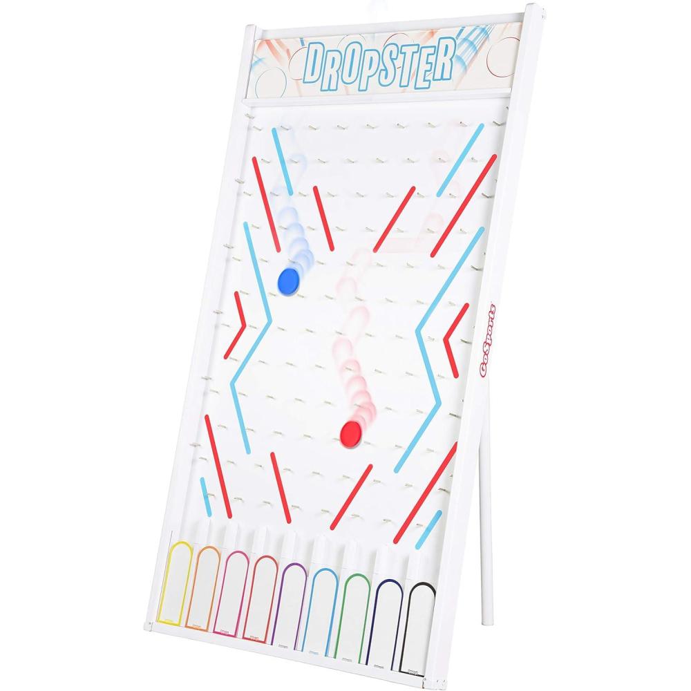 WHAT IS DROPSTER: A fun and creative game of chance with countless applications! Set includes 1 Dropster game board 8 color play coins and 81 Dropster cards for labeling slots with prizes giveaways incentives and more!|PRIZE DROP GAMES: Simply label the included Dropster cards with: prizes (cash giveaways) incentives (discounts gift cards) educational games (trivia math) corporate uses (tradeshow promos employee rewards) fitness goals (exercises healthy foods) family games chores and more!|GENERATE EXCITEMENT: Players will drop coins to test their luck while encouraging fun and participation at home in the workplace at school retail stores tradeshows and more – the possibilities are endless for adding fun to any task or setting!|INSTANT FOLDABLE SETUP: Dropster features retractable support legs that instantly fold out and lock for setup and fold in for compact storage – game board measures approximately 3.8 ft tall and 2 ft wide|AMERICAN BRAND: GoSports is a US Company with US Customer Support and we fully stand behind our products