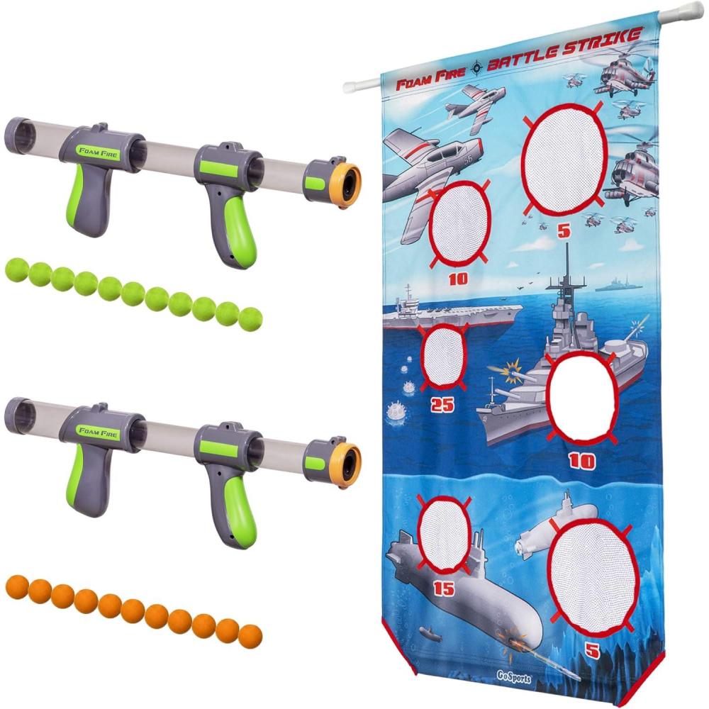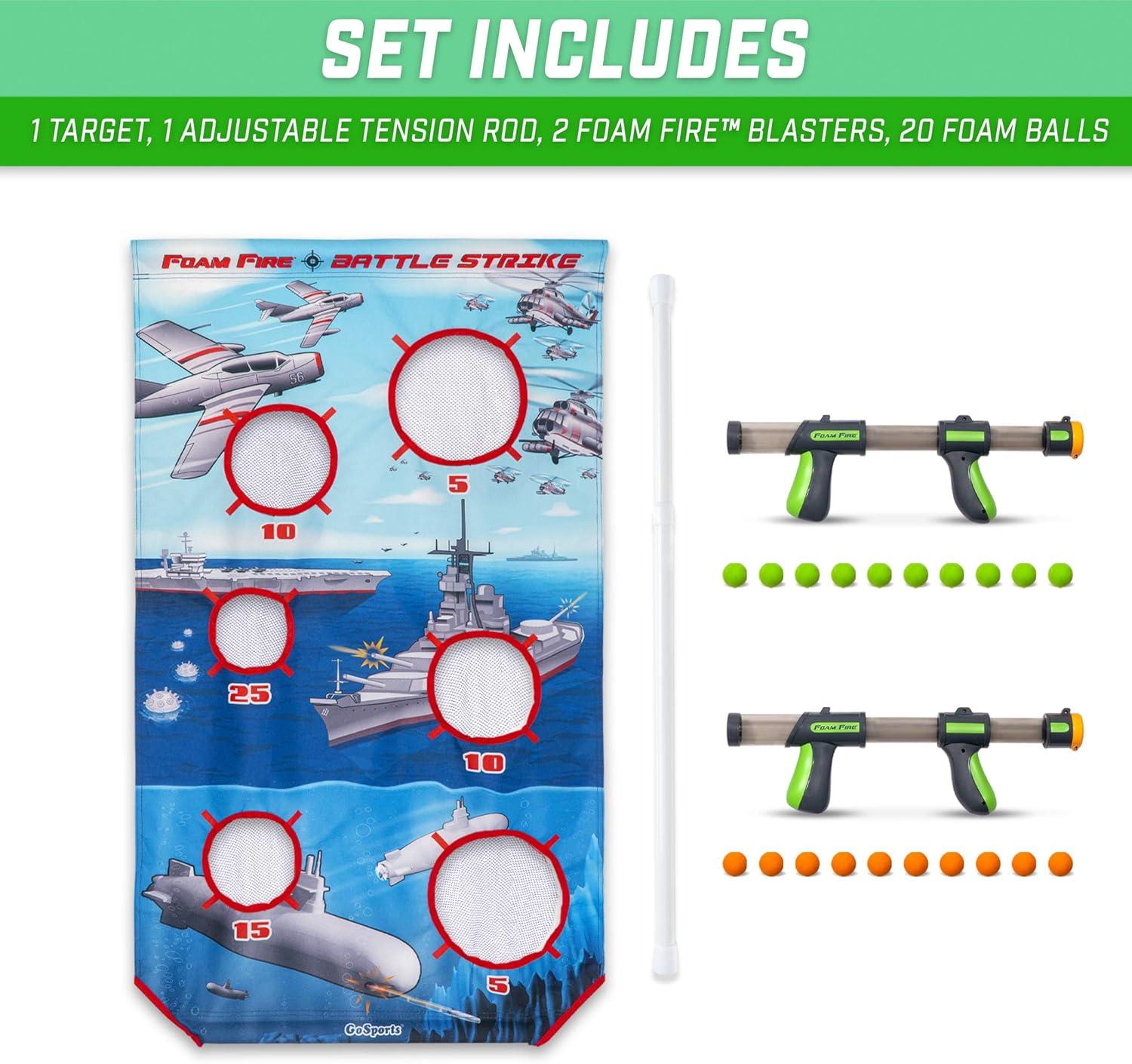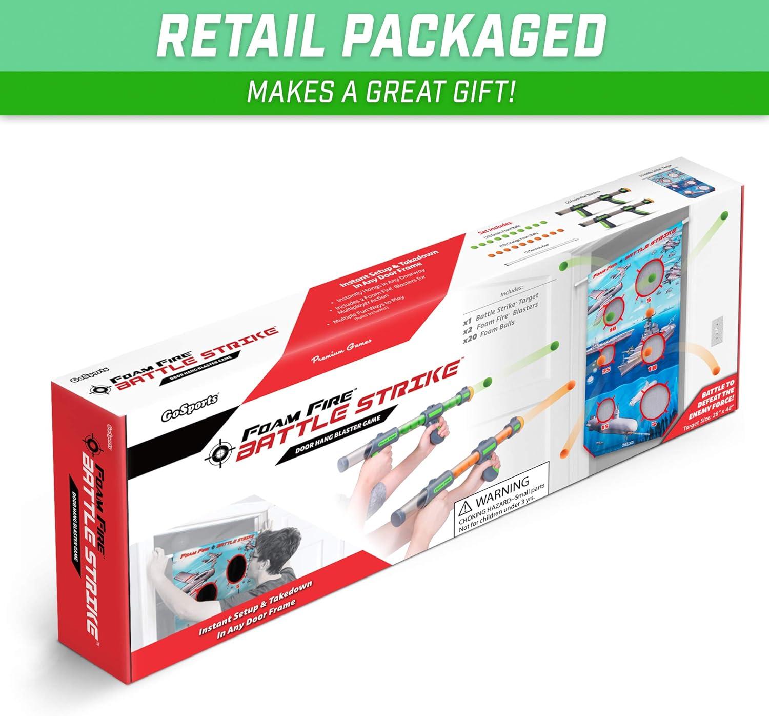 GoSports Foam Fire Games – Alien Invaders, Trophy Hunt, or Door Hang Battle Strike and Capture The Cash Targets – Include 2 Toy Blasters for Kids and Foam Ball Projectiles(Battle Strike)