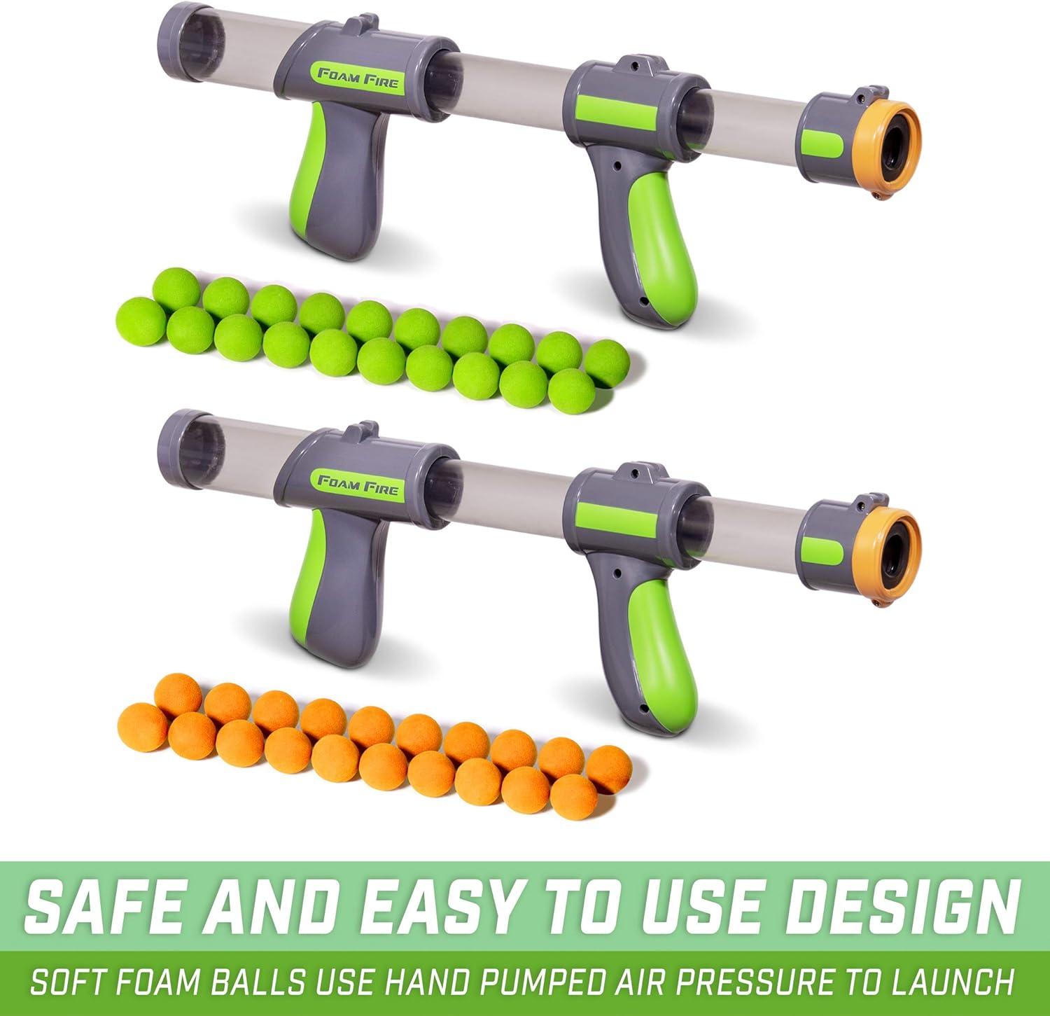 FOAM FIRE BLASTERS: The Foam Fire Blasters feature a safe and easy to use hand pump design to launch the foam balls at the target, simply load, pump and fire