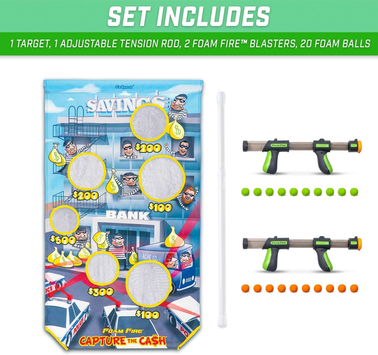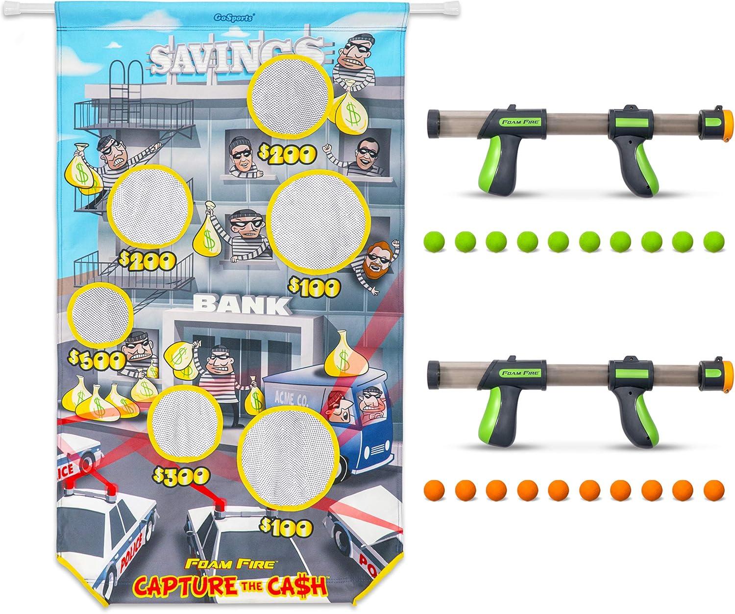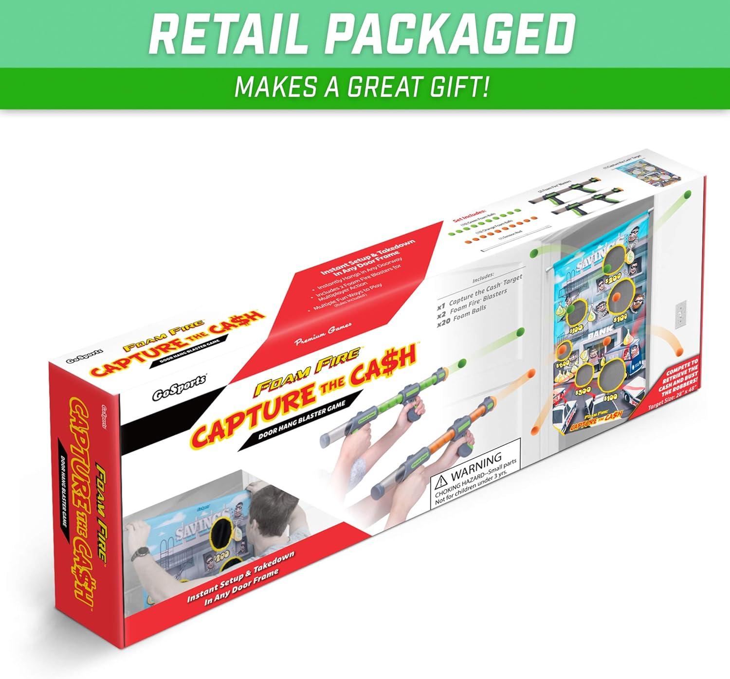 GoSports Foam Fire Games – Alien Invaders, Trophy Hunt, or Door Hang Battle Strike and Capture The Cash Targets – Include 2 Toy Blasters for Kids and Foam Ball Projectiles(Capture the Cash)