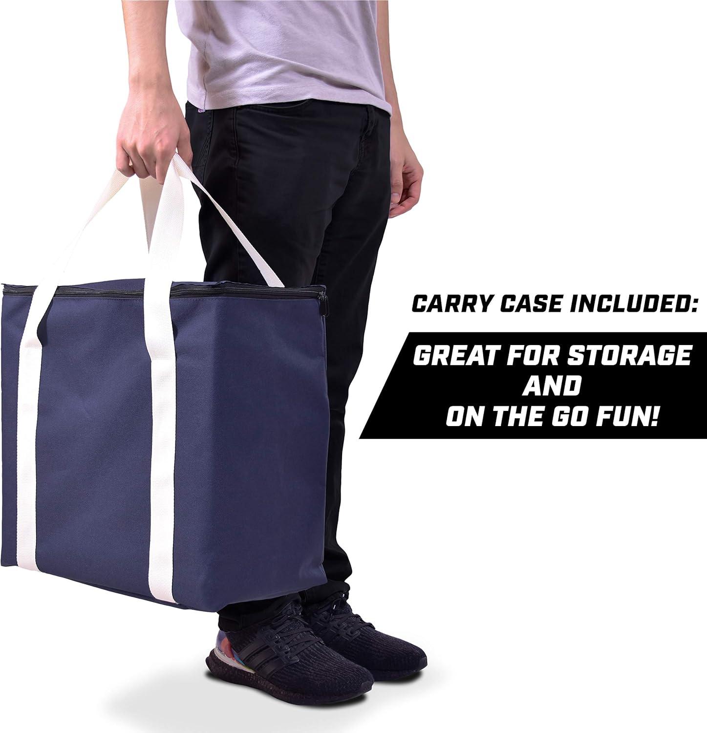 GIANT SIZE: Toppling Tower starts at 2.5 ft tall and grows to over 5 ft during play; Includes 54 giant blocks (18 rows), carrying case and custom rules board; Each block measures 7.2 x 2.4 x 1.5 inches