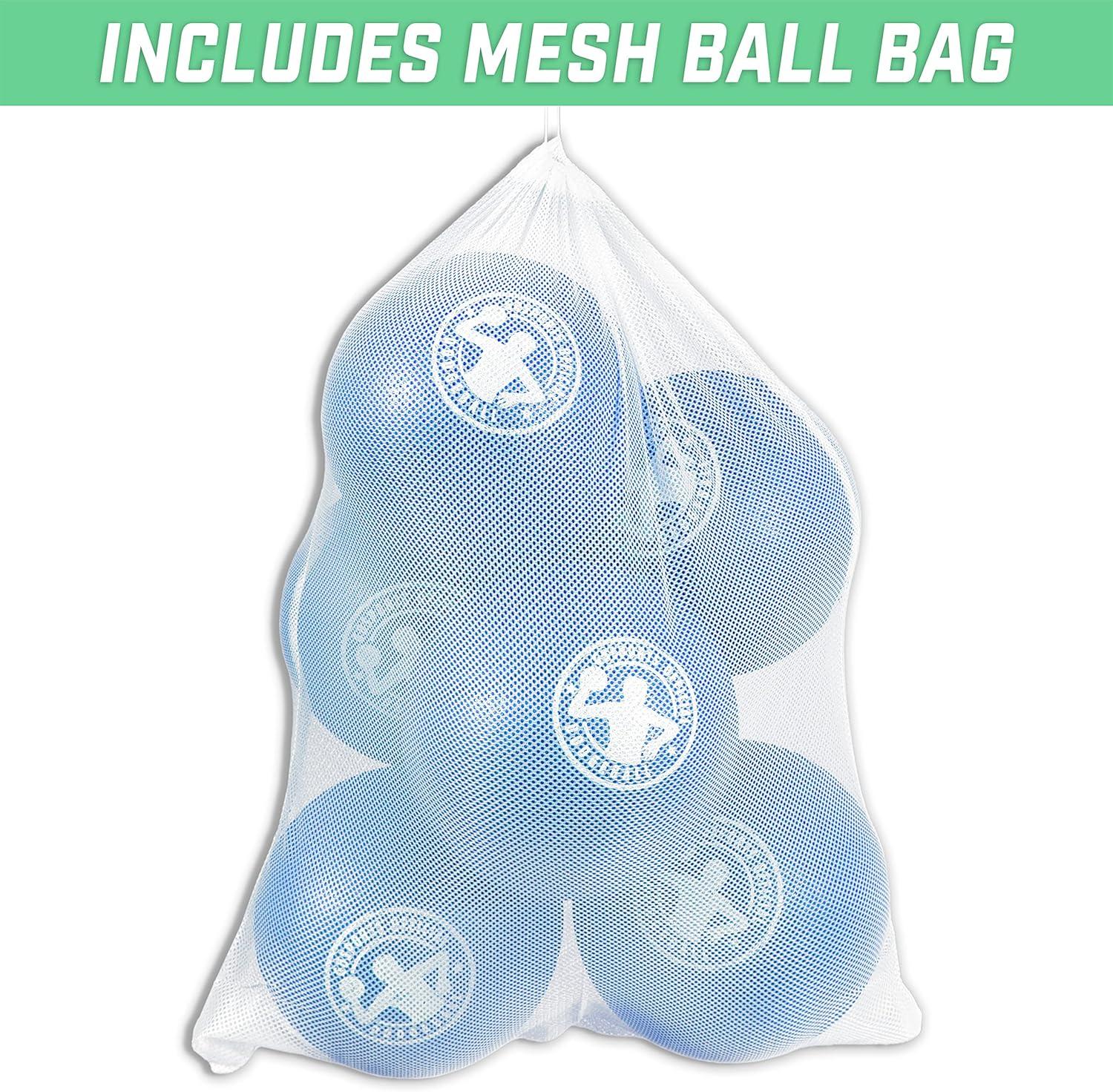 GoSports Inflatable Dodgeballs – Choose 5 Inch or 7 Inch No Sting Balls – Set of 6 Includes Ball Pump & Mesh Bag(7″ Balls 6 Pack – Blue)