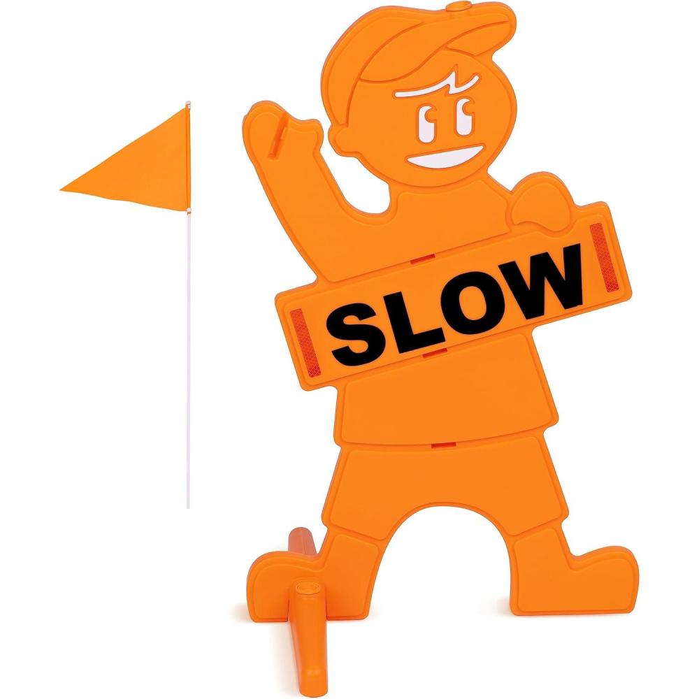 The GoSports Slow Down Man! is a high visibility street safety sign designed to alert motorists that children and pedestrians are present in the area and that they should proceed with caution. The sign has a single double-sided message displaying SLOW to encourage traffic safety. The Slow Down Man! is made from ultra-durable weather resistant materials so it can be positioned outdoors in any area where traffic safety is vital. The product assembles in seconds and features a water weighted design with a wide base foot for maximum stability in outdoor conditions. Fully assembled, the item measures approximately 2.5 ft tall by 1.7 ft wide. The Slow Down Man! is a must-have for encouraging traffic safety around neighborhoods, playgrounds, learning centers, daycares, and more. Now you can encourage kids to safely play outside with the GoSports Slow Down Man!.