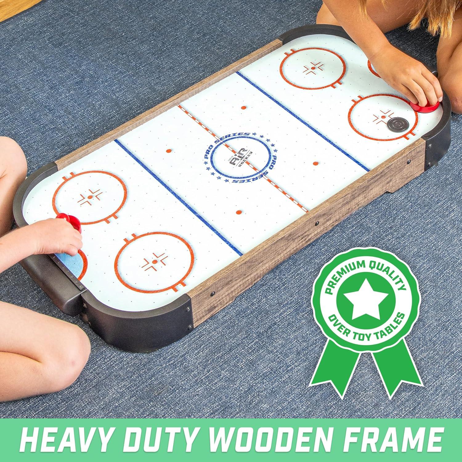 GoSports Magna Hockey is an action packed tabletop game that will be an instant classic with friends! Magna Hockey is like a magnetized version of air hockey that puts you head to head in a battle of skill. Magnetically control your player on the field from underneath the board and fight for possession of the Magna Ball for a chance to score on your opponent! Just beware the magnetized Magna Guards in the center field because if they latch onto you the tide of the game can turn quickly. Magna Ball is easy to learn and play while maintaining a fun competitive spirit that will have your friends gathered round and hooked for hours! GoSports uses premium wooden materials that make Magna Ball incredibly durable for countless matches at your next party, game night, camping trip and more. The game board measures 14 in x 18 in and assembles in seconds. Now take your game to the next level and settle the score on the ice with GoSports Magna Hockey!