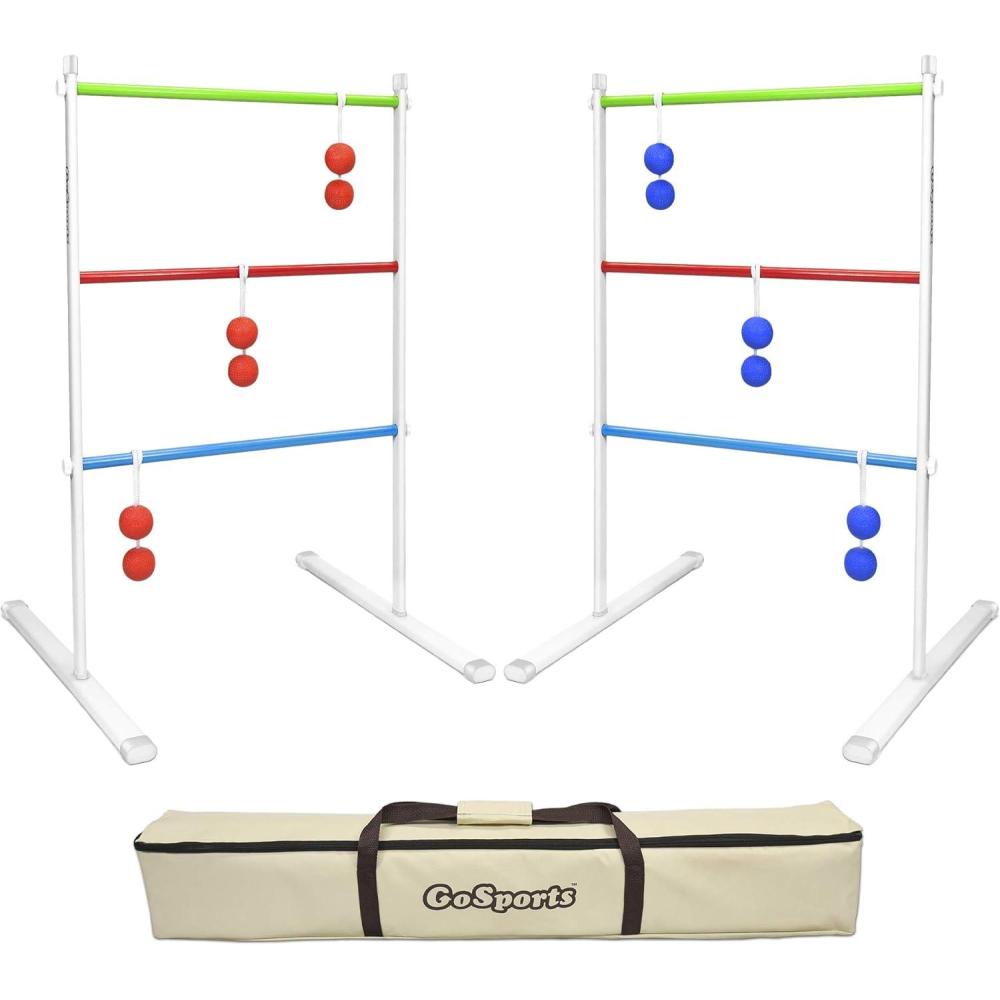 The GoSports metal ladder toss set is made from premium materials to provide the best overall ladder toss experience. The frame and rungs are made from powder coated steel for maximum durability. The bolos are made from soft rubber for indoor or outdoor use, and are connected using thick string to prevent tangles. Everything can be conveniently stowed in the included Zip-Up carrying case for maximum portability. Our goal is to provide you with the best possible game so you can get out there and have the most possible fun with friends and family.