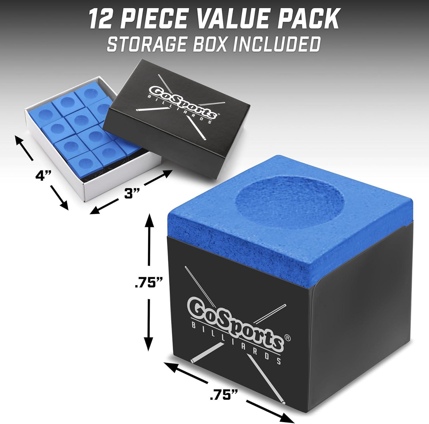 GoSports Premium Pool Cue Chalk Cube 12 Pack – Black, Blue, Red, or Green – Billiards Pool Stick Chalk(Blue)