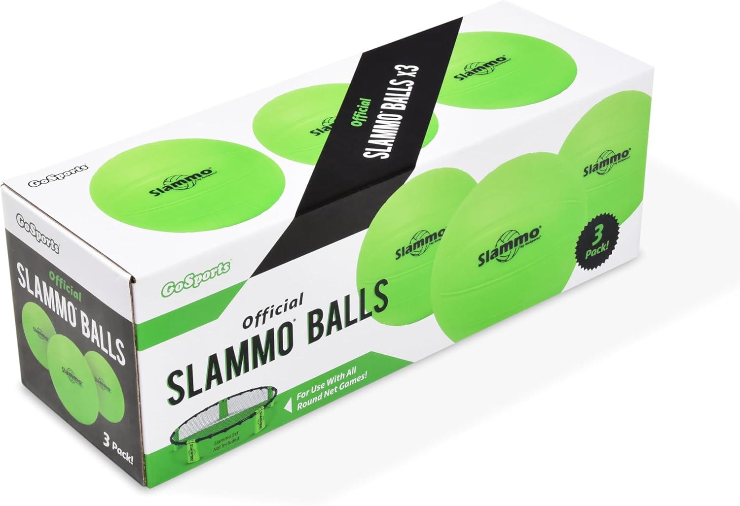 The GoSports Slammo Ball Replacement Pack includes 3 Competition Slammo Balls (9cm). This is great for players who want extra balls for training or if you have a dog that turned your other ones into chew toys. We engineered an improved ball design over the competition to include deeper ridges and enhanced grip that improve the overall performance and fun of Slammo.