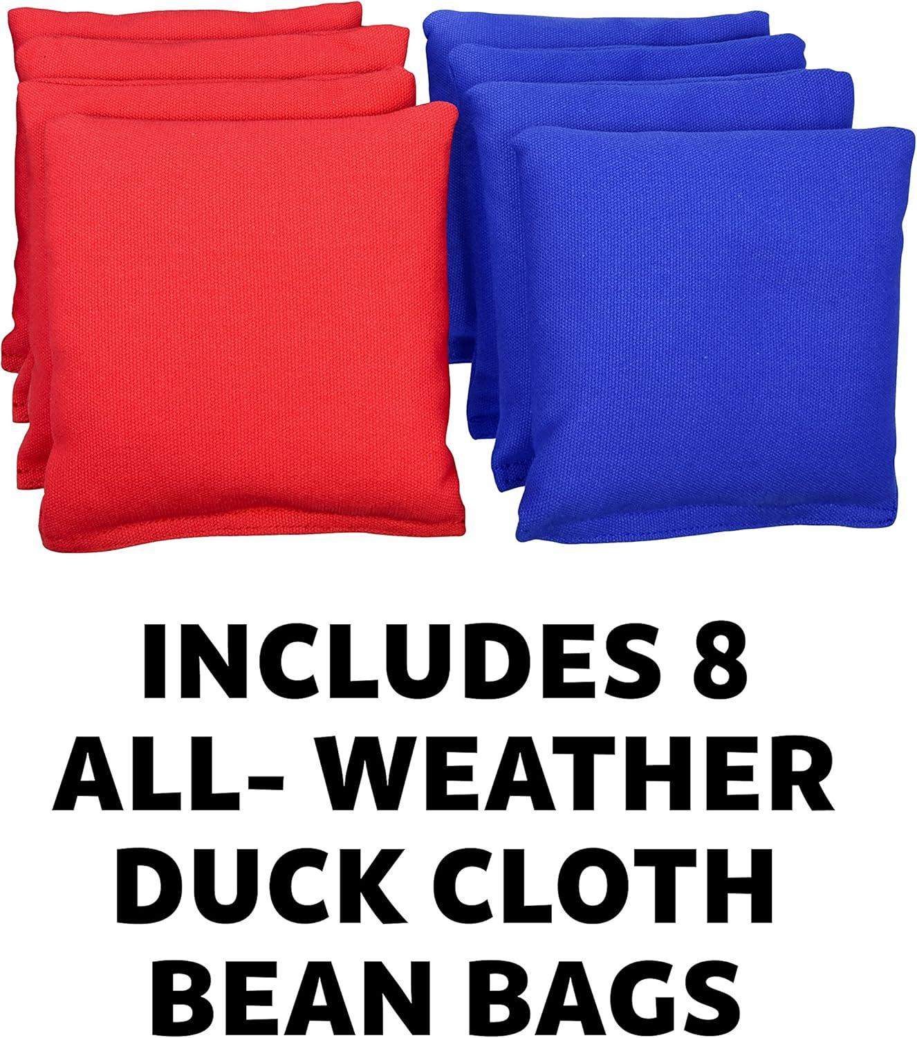 PREMIUM BAGS: Includes 8 Regulation Size All-Weather Bean Bags (4 Red + 4 Blue)