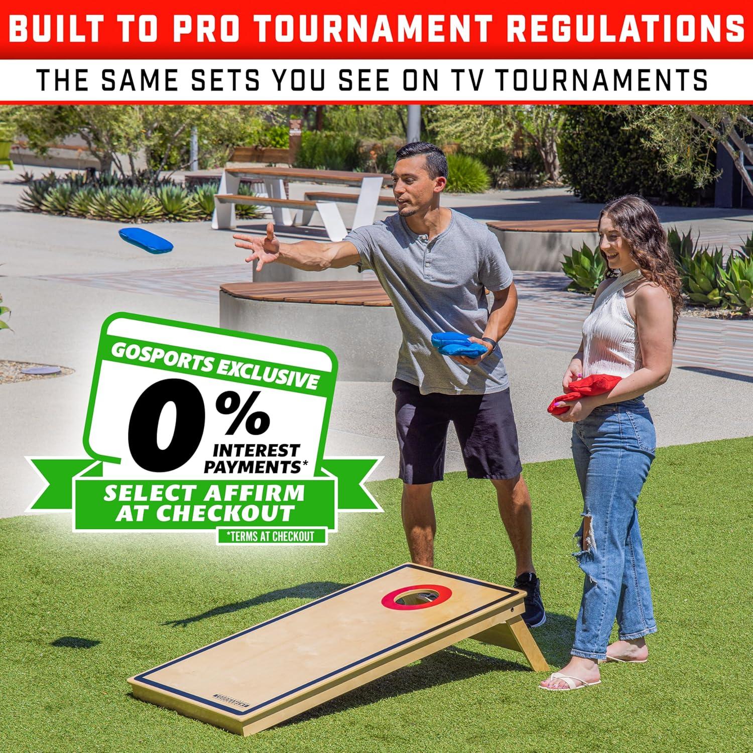 GoSports Tournament Edition Regulation Cornhole Game Set – 4 ft x 2 ft Wood Boards with 8 Dual Sided (Slide and Stop) Bean Bags(PRO Tournament Edition)