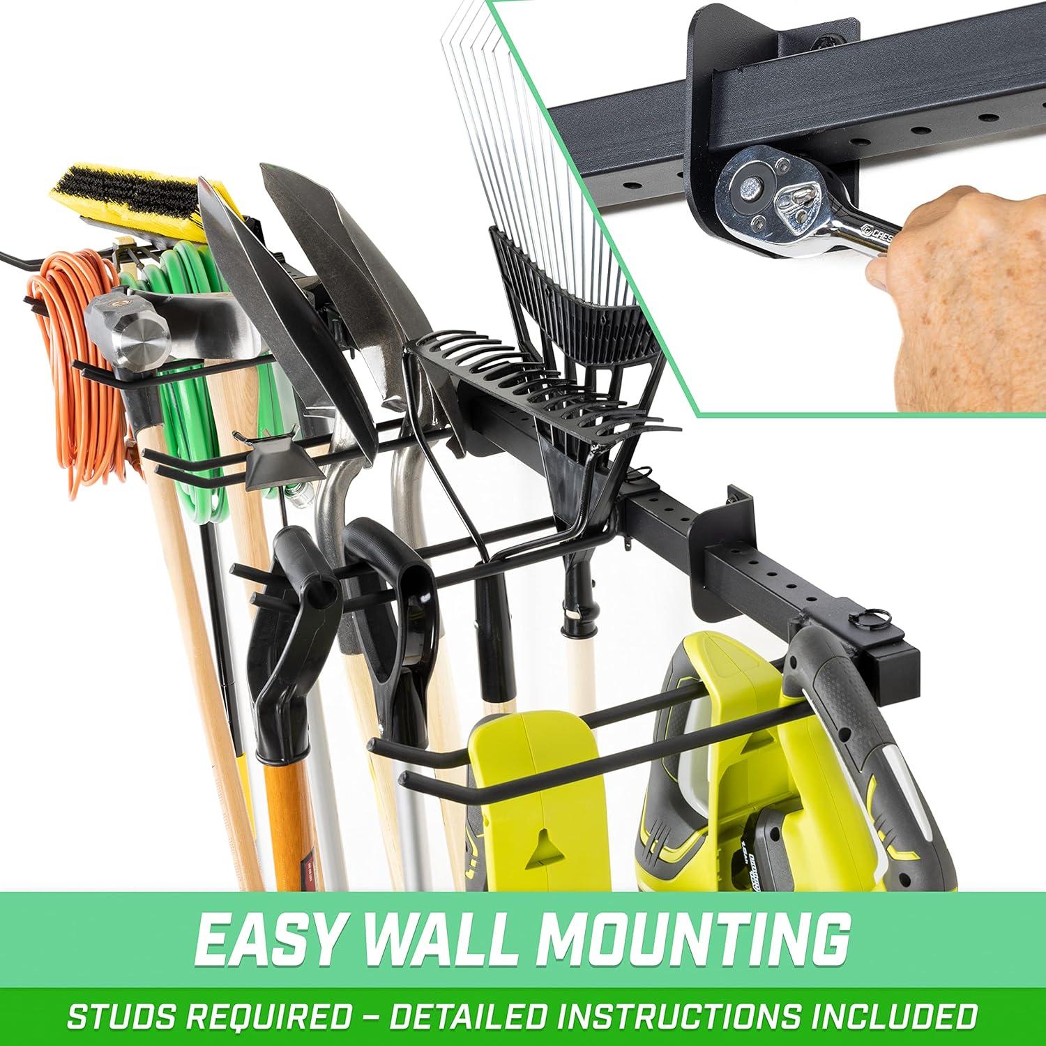 GoSports Wall Mounted Garage Yard Tool Organizer – Adjustable Storage Rack for Garden and Shop Tools