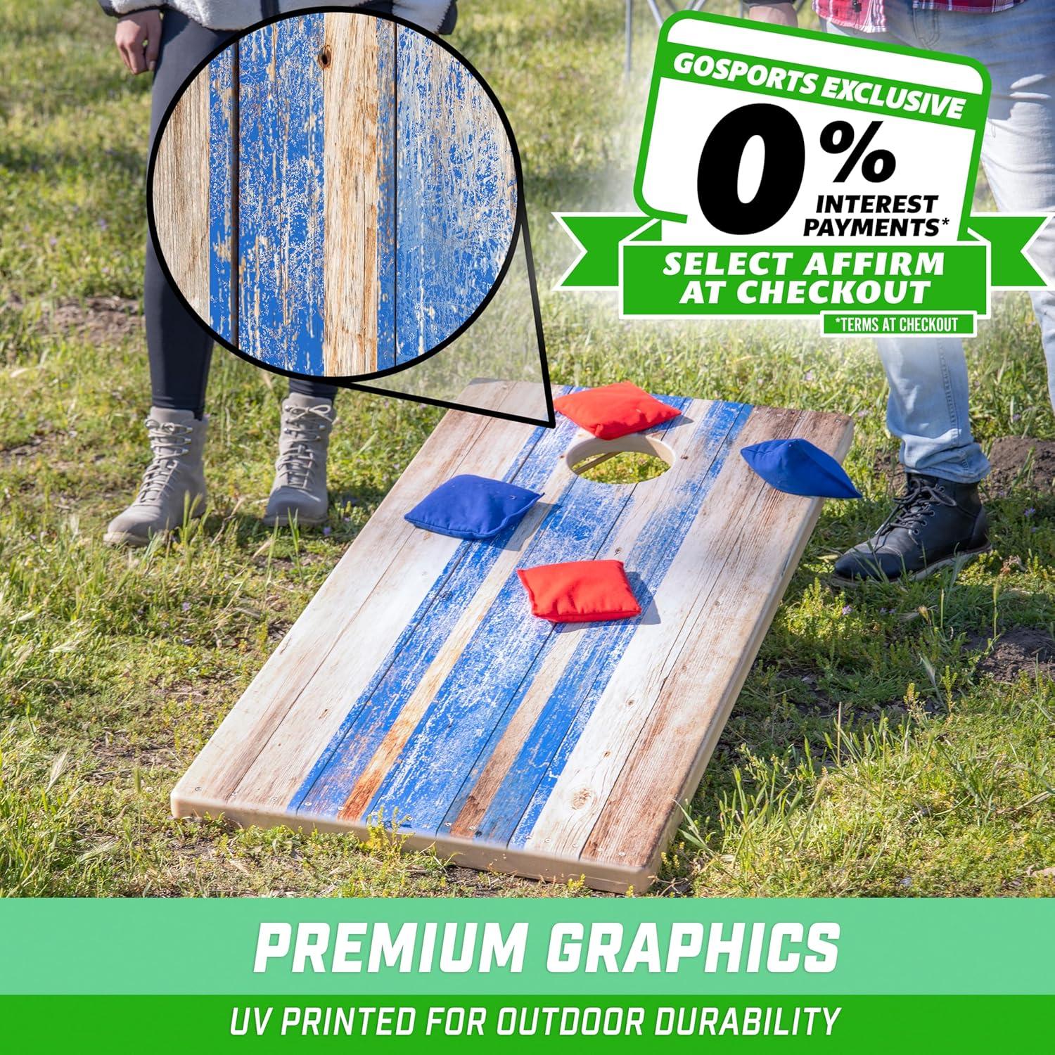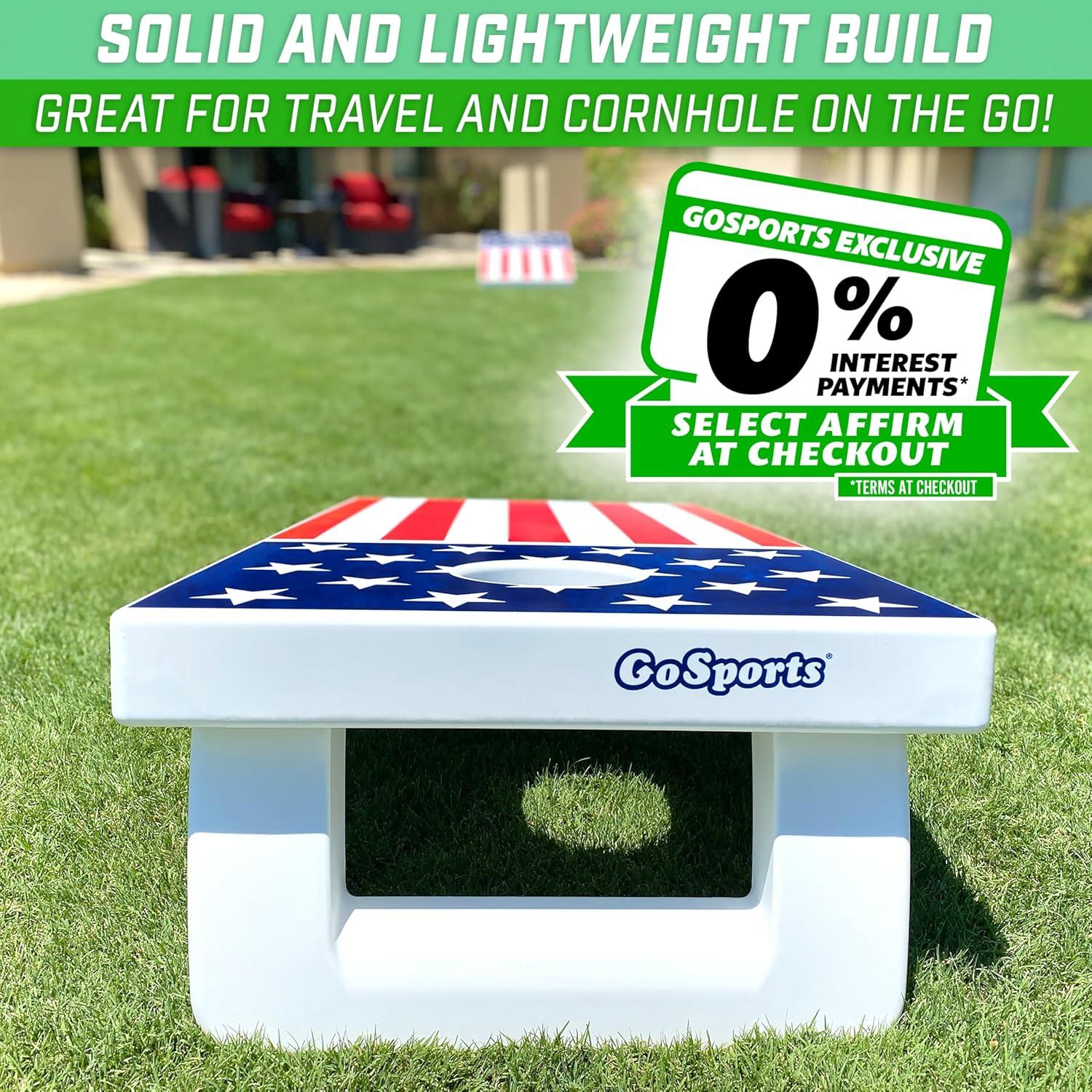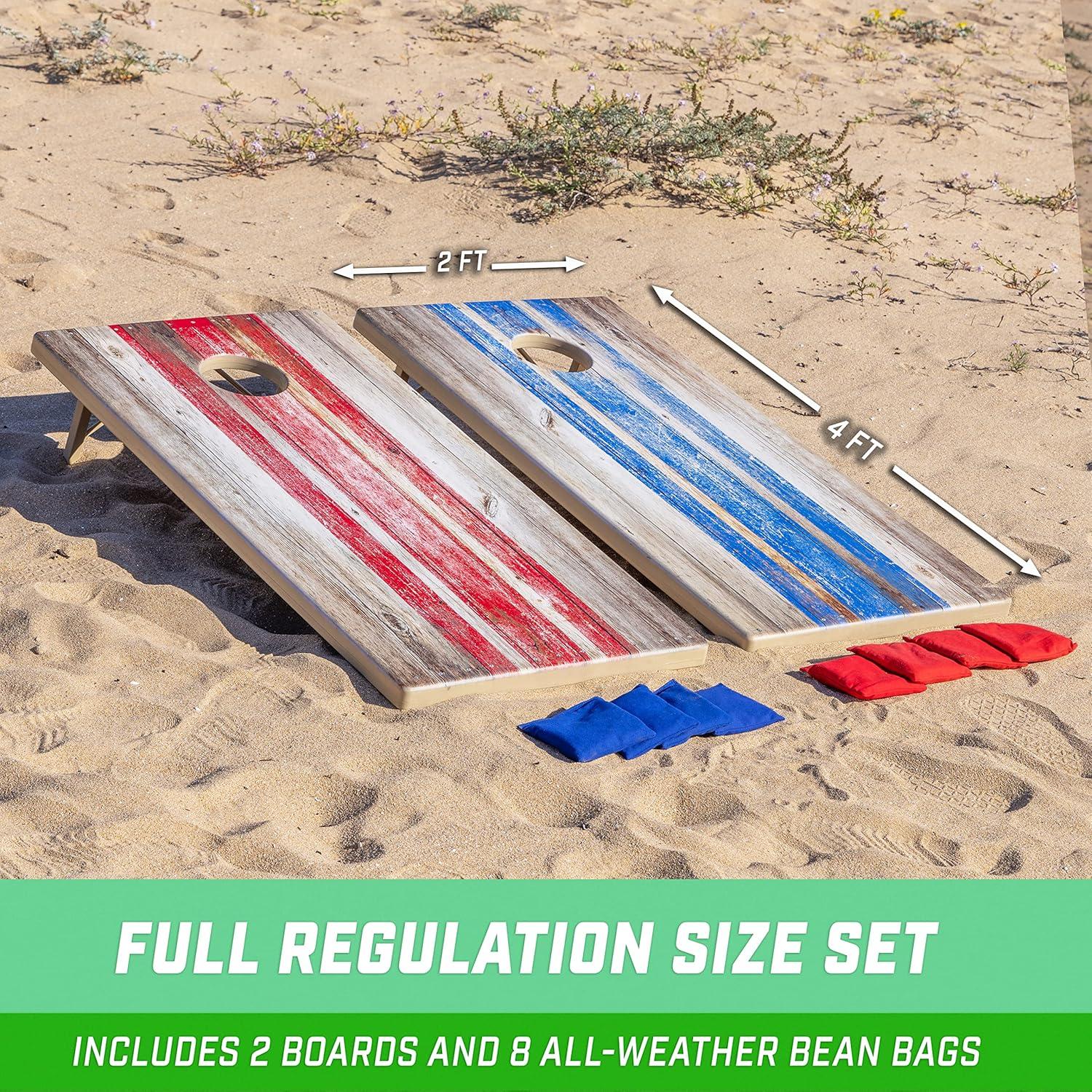 - Don't wait, get up to 50% off on GoSports Tailgate Size 3 x 2 ft Cornhole Sets - Choose LED or Standard - Portable Set Includes 8 Bean Bags & Game Rules(Rustic American Flag Edition) during our end-of-season sale event.
