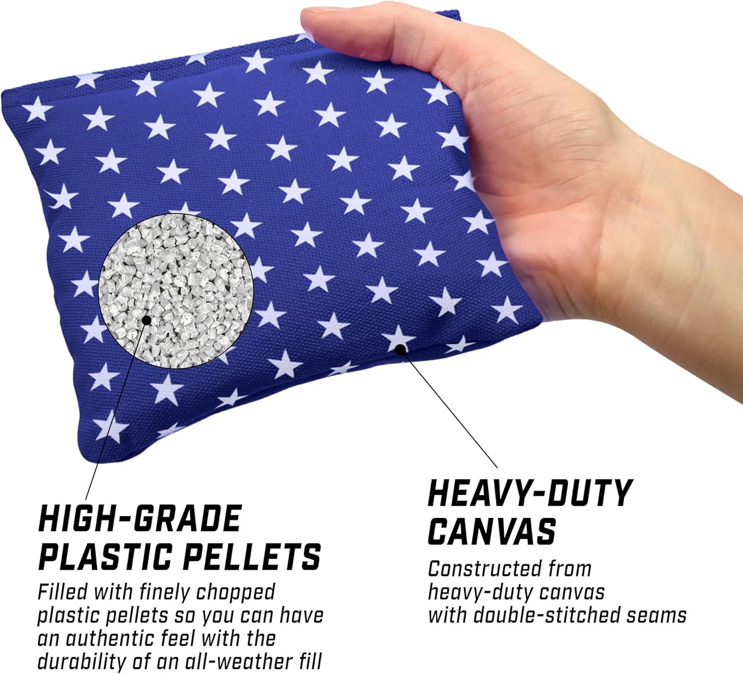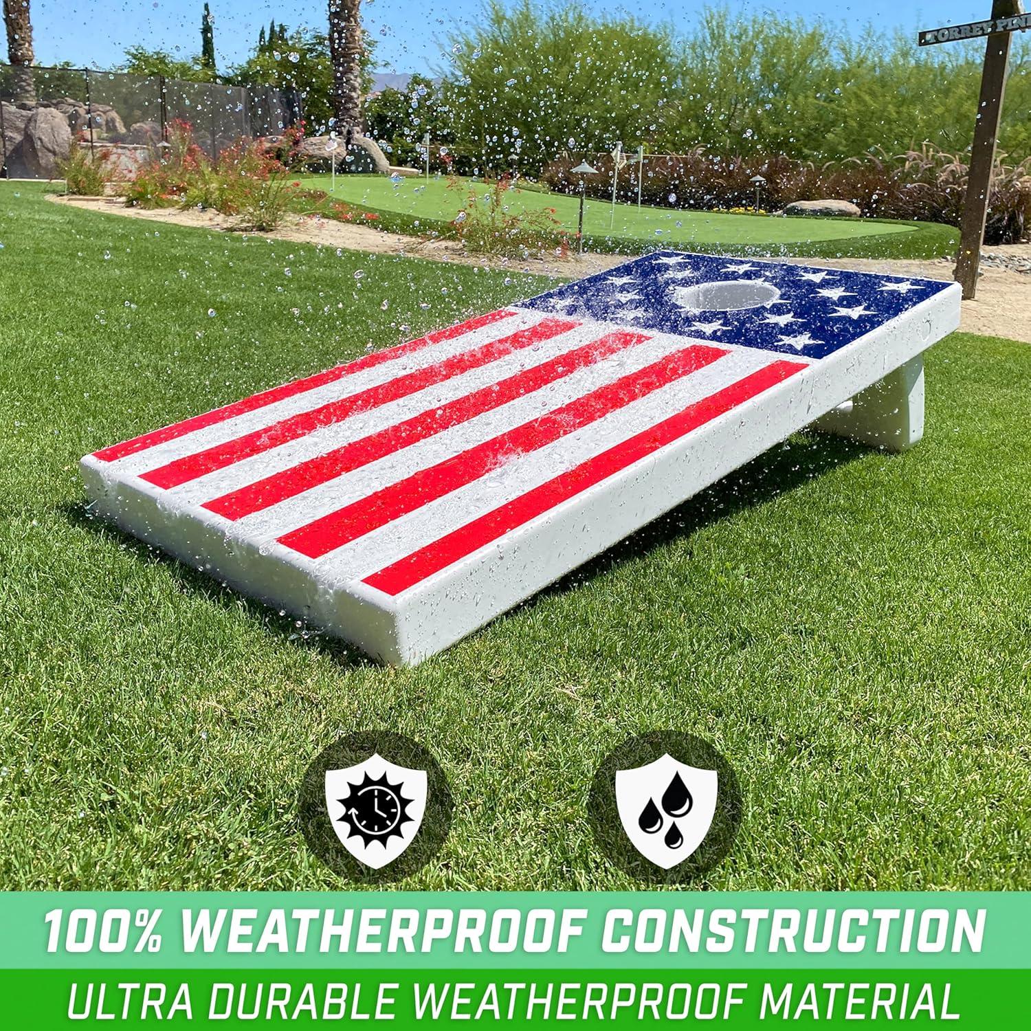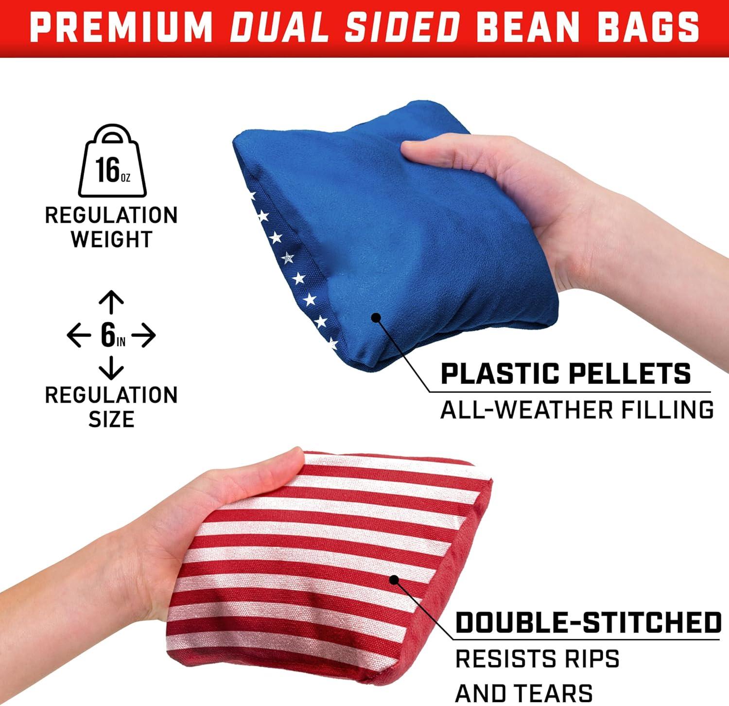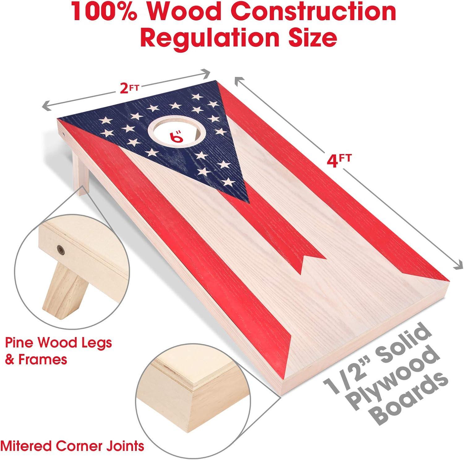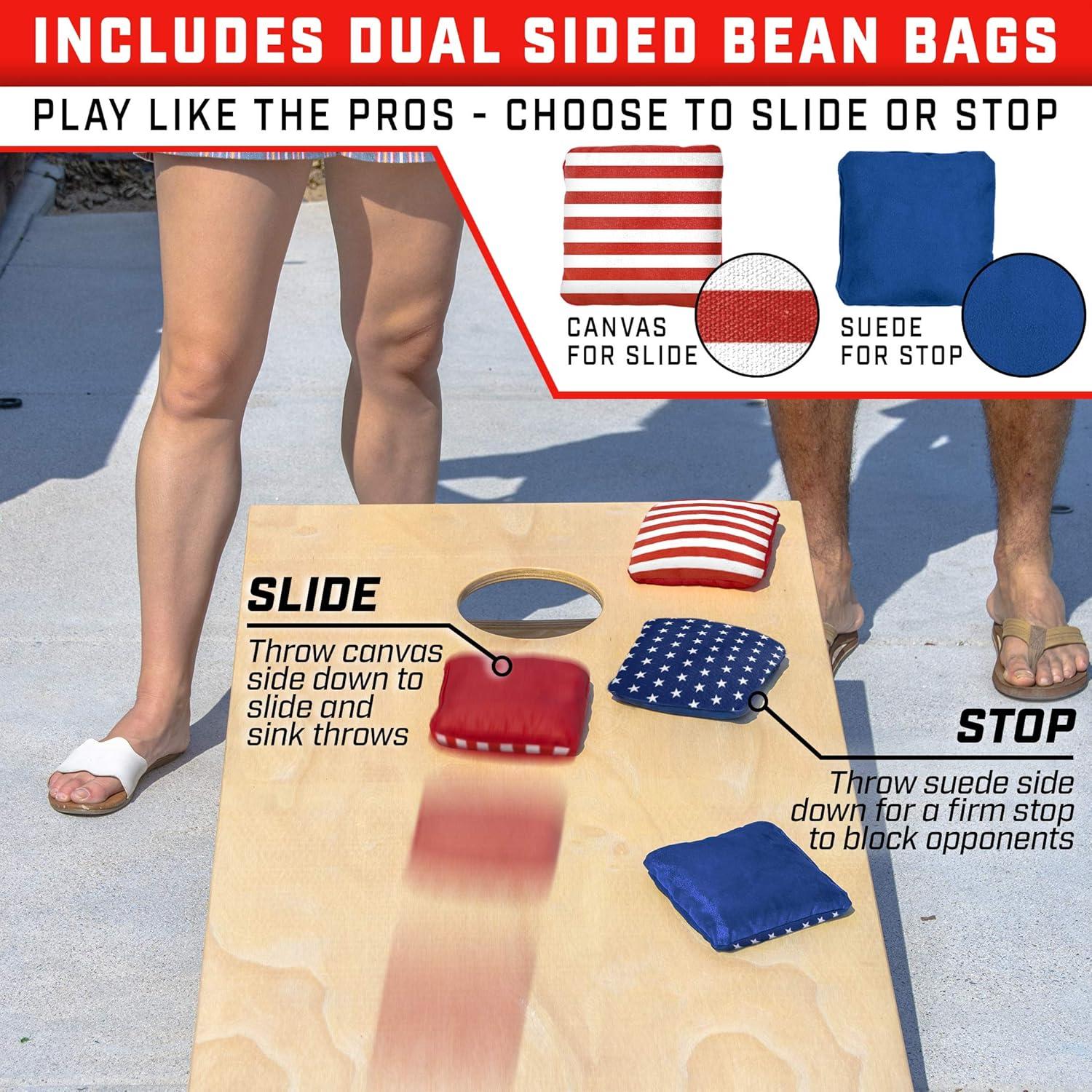 GoSports 4 ft x 2 ft Commercial Grade Cornhole Boards Set – Natural Wood Cornhole Boards, Choose From Different Bean Bag Color Combinations(American Stars and Stripes)