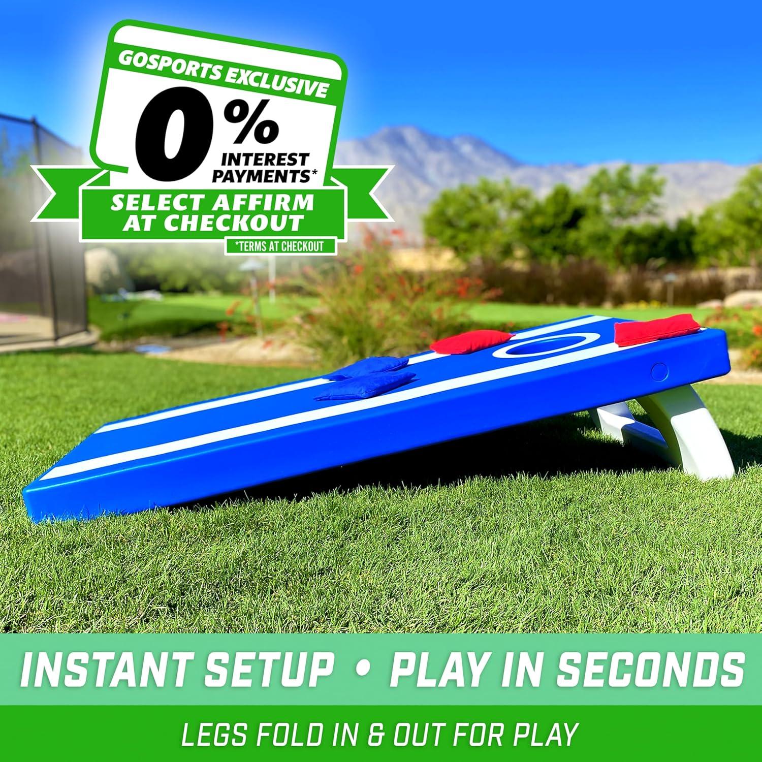 - Get up to 50% off on GoSports 2 ft x 1 ft Backpack Cornhole Game Set, Includes 2 Premium Wood Travel Size Boards and 8 Mini Stick and Slide Bean Bags styles during our spring sale event.