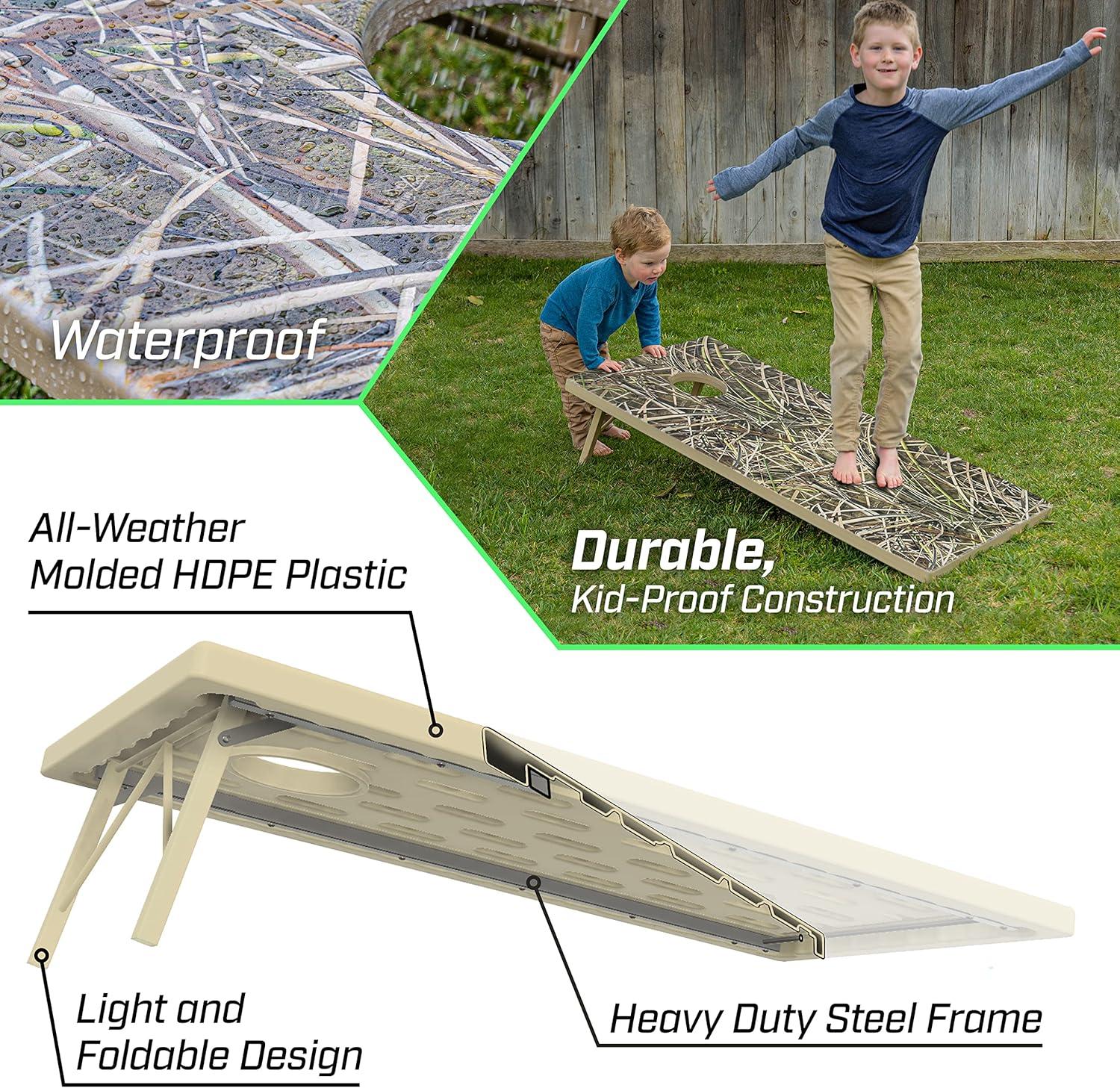 GoSports 4 ft x 2 ft Commercial Grade Cornhole Boards Set – Natural Wood Cornhole Boards, Choose From Different Bean Bag Color Combinations(Dark Green & Bright Green)
