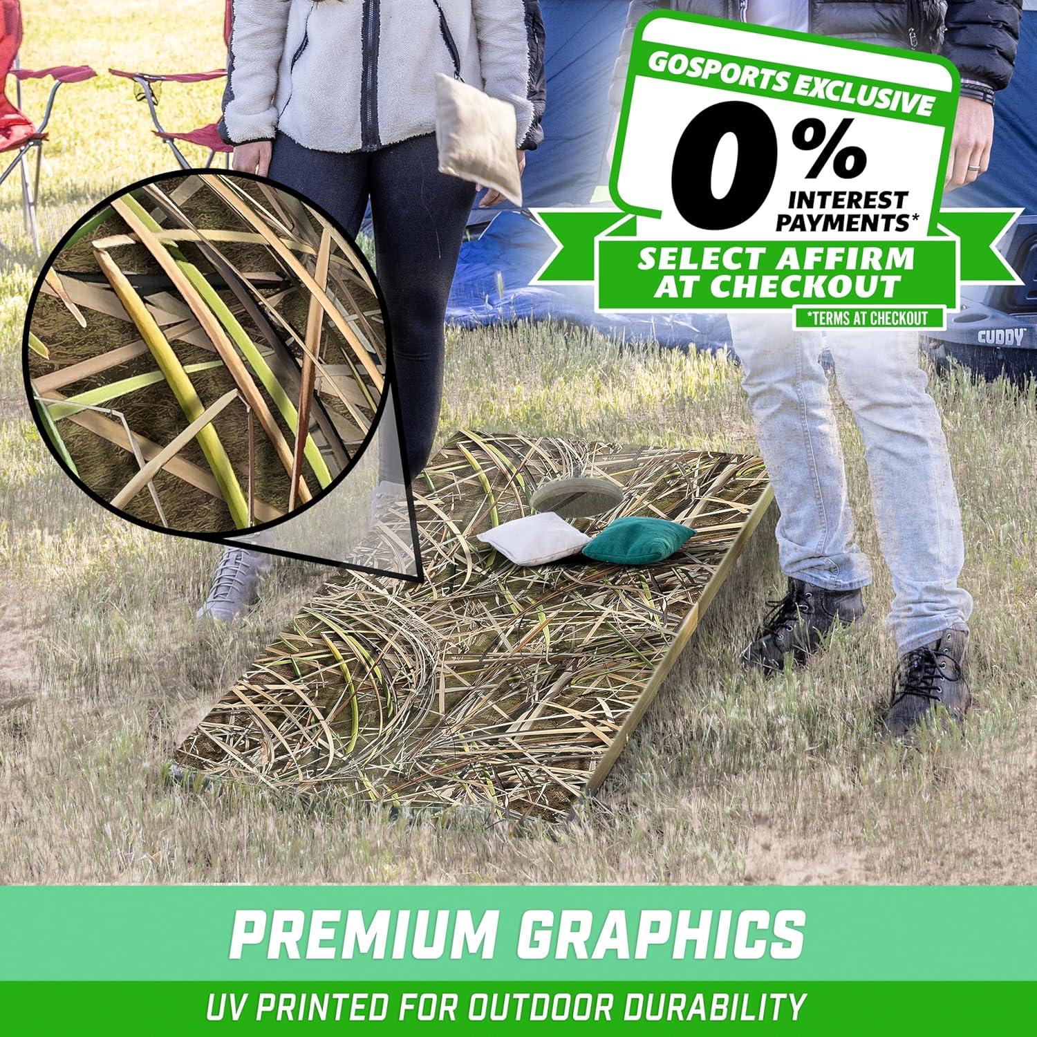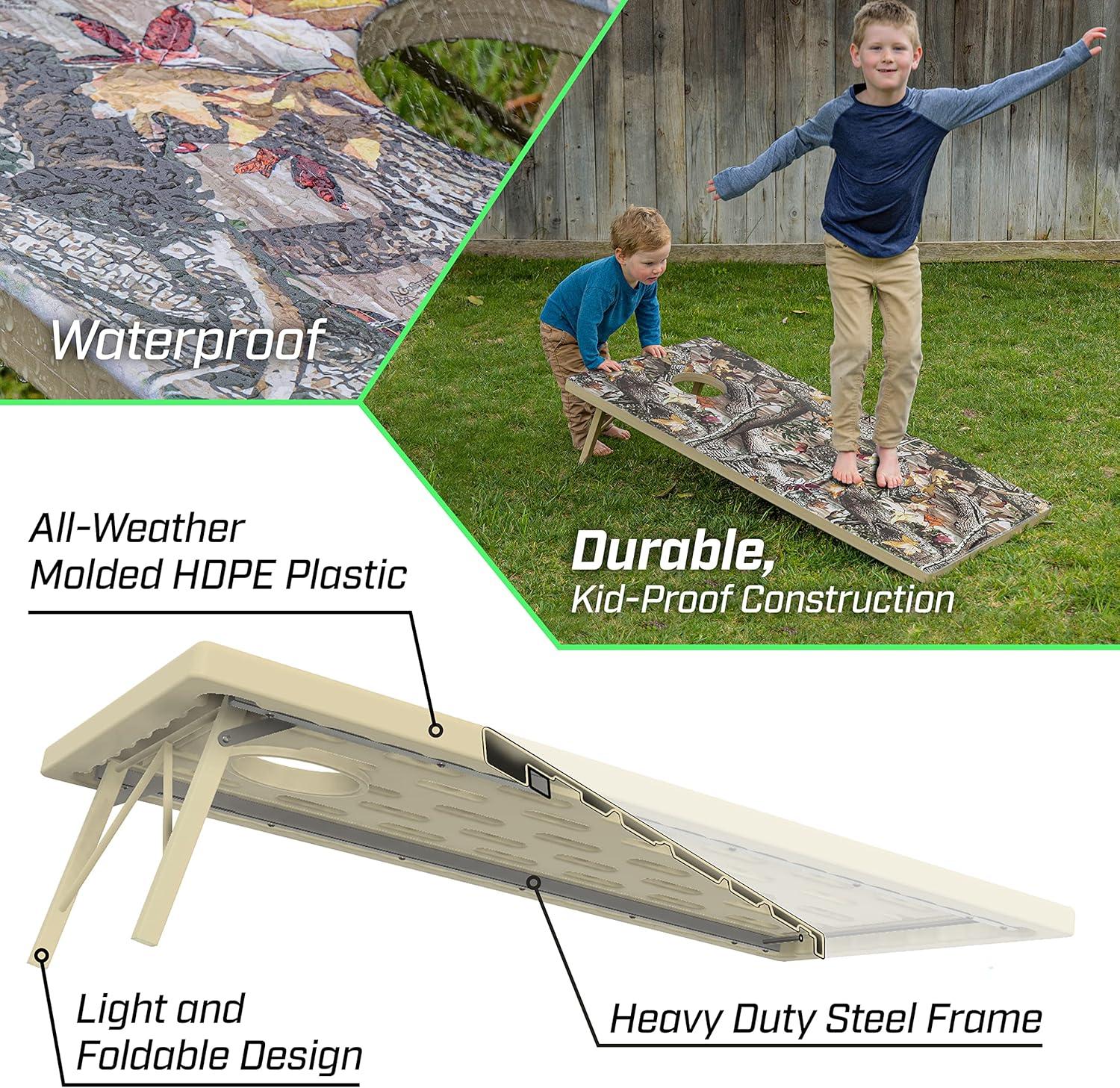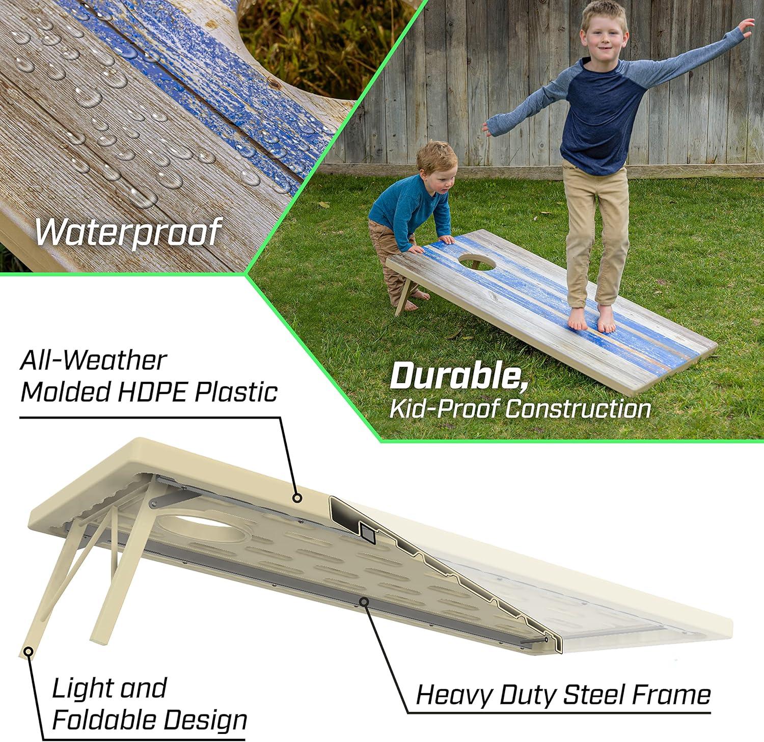 GoSports 3 x 2 ft Cornhole Board Set – Portable Outdoor Toss Game for Adults & Family – Includes Set of 8 Bean Bags with Built-in Storage – Choose Your Style(Bright Rustic)