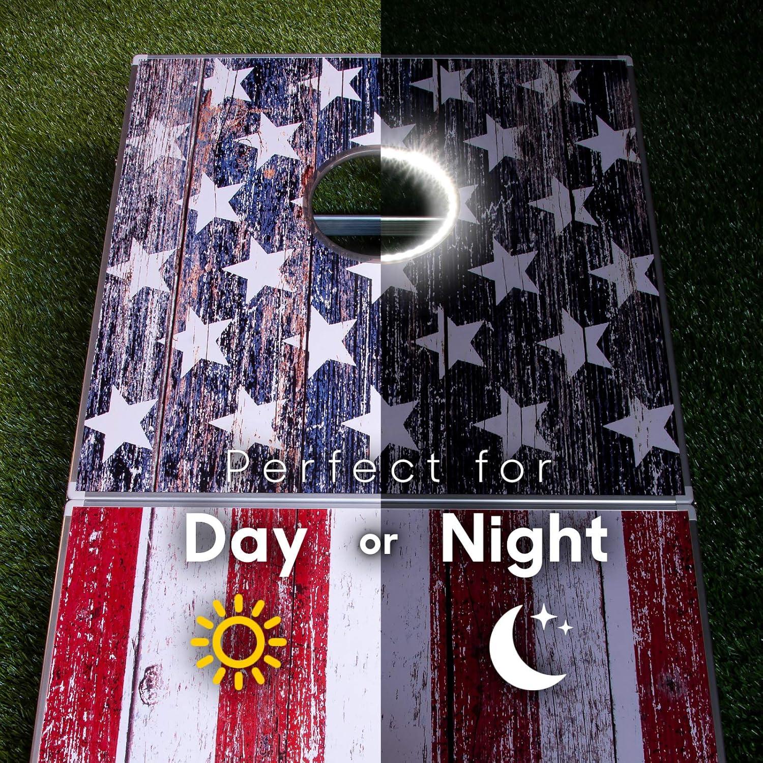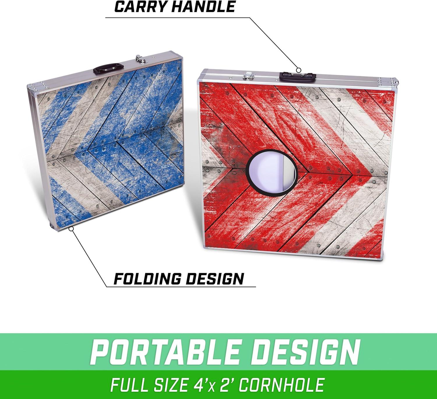GoSports Tailgate Size 3 x 2 ft Cornhole Sets – Choose LED or Standard – Portable Set Includes 8 Bean Bags & Game Rules(Rustic American Flag Edition)