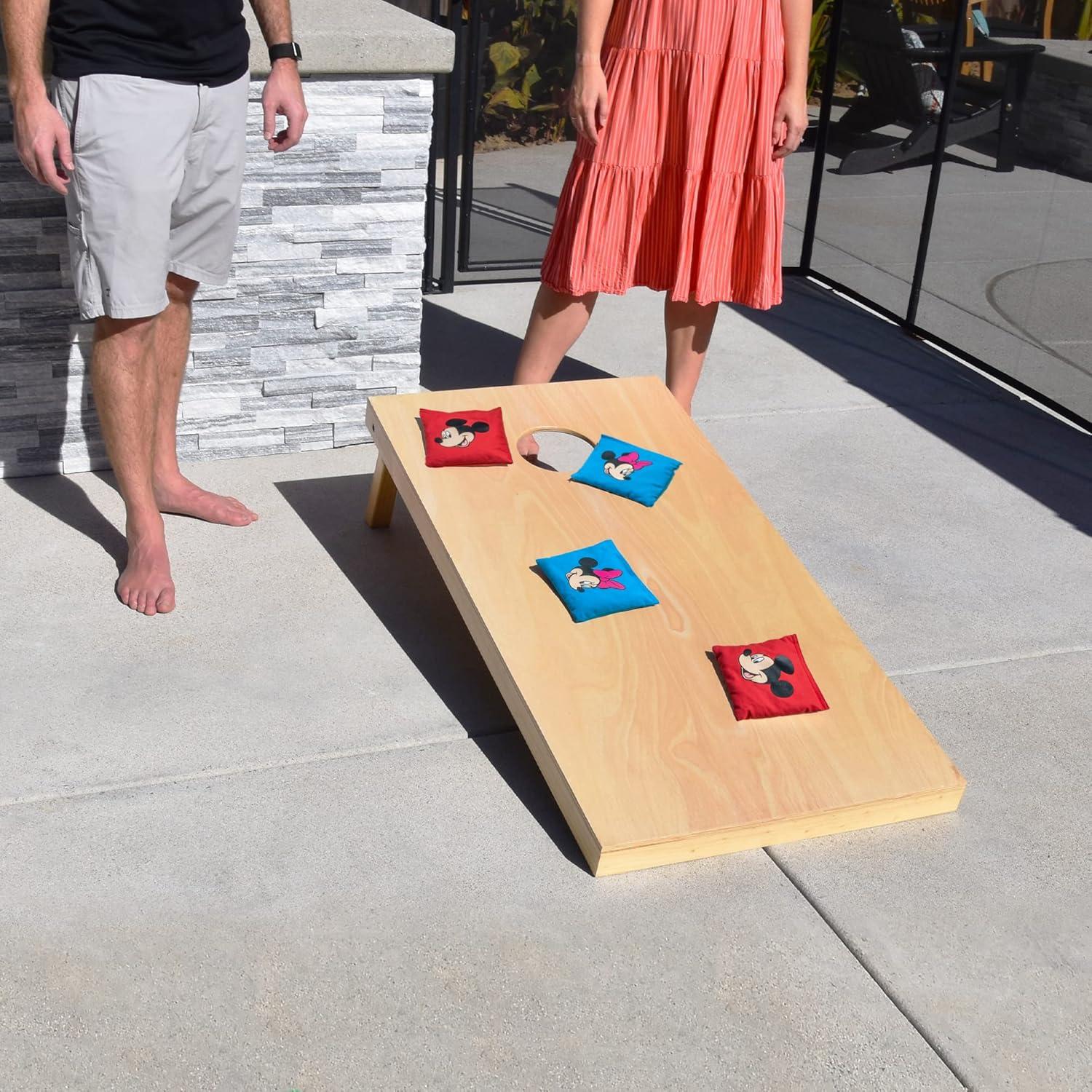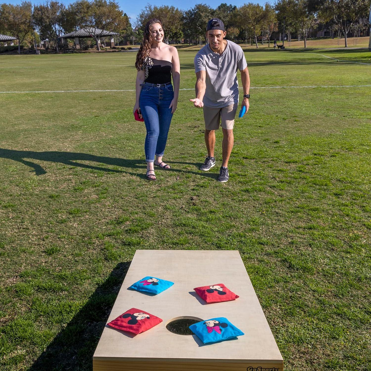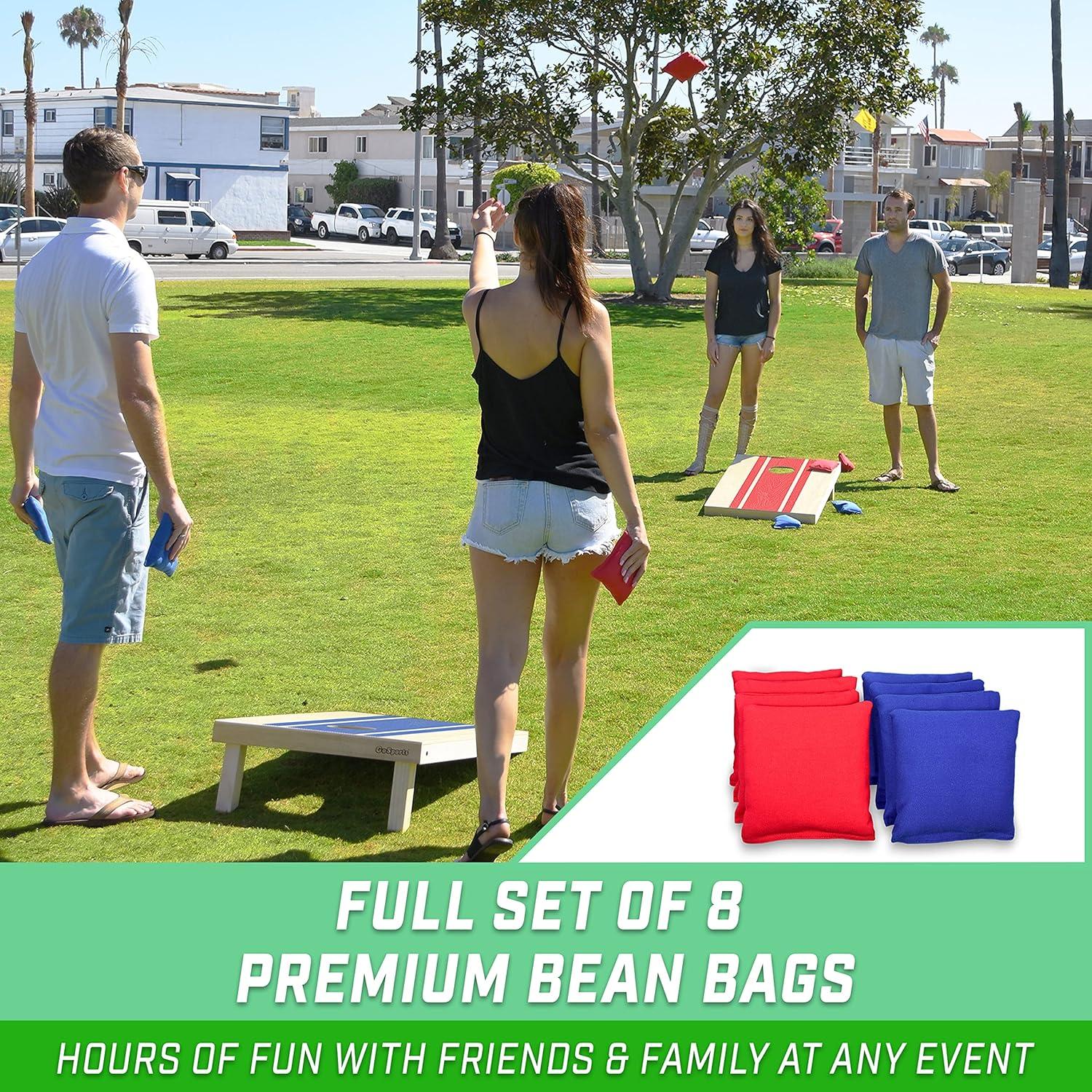 GoSports 4 ft x 2 ft Commercial Grade Cornhole Boards Set – Natural Wood Cornhole Boards, Choose From Different Bean Bag Color Combinations(Classic Red & Blue)