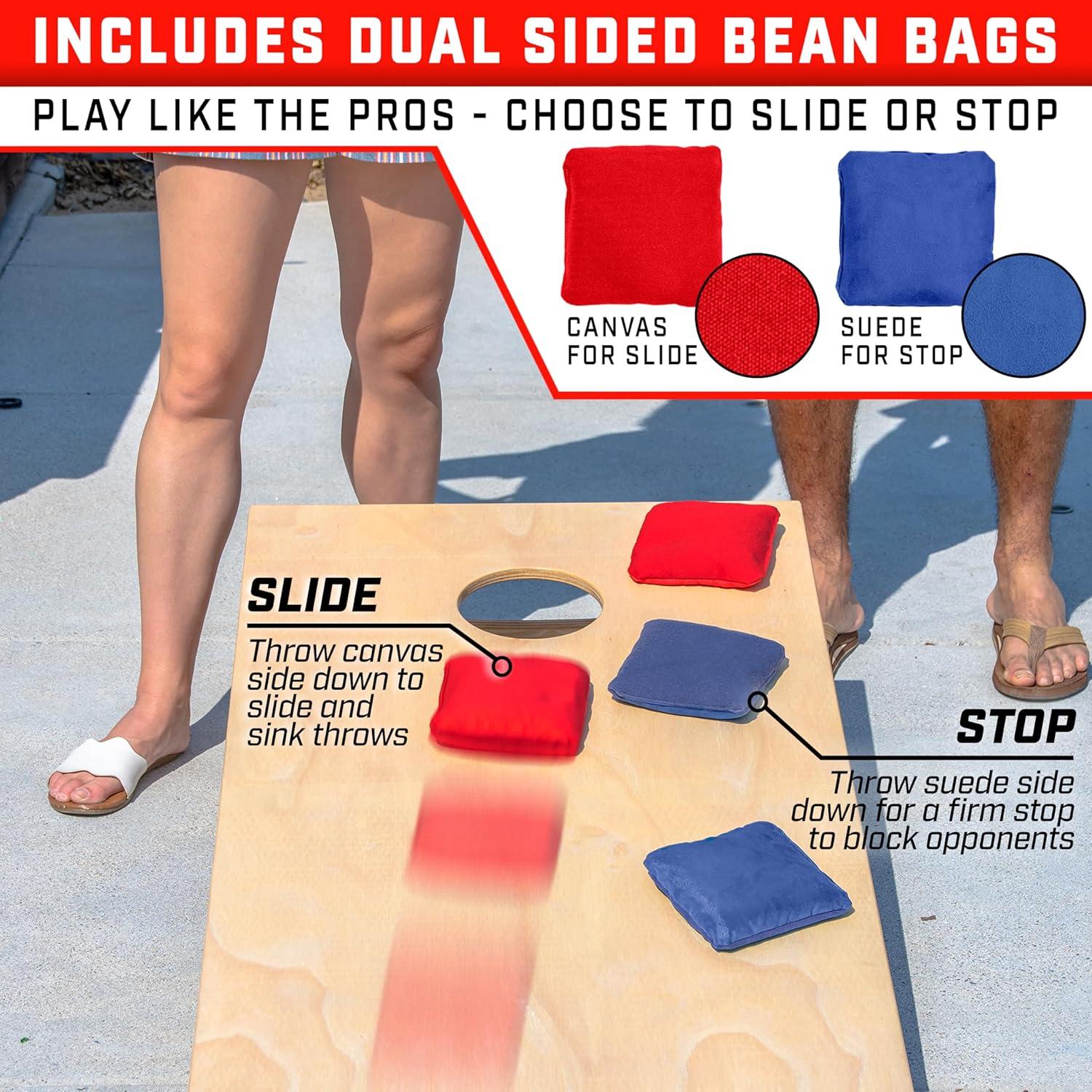 GoSports Tournament Edition Regulation Cornhole Game Set – 4 ft x 2 ft Wood Boards with 8 Dual Sided (Slide and Stop) Bean Bags(PRO Tournament Edition)