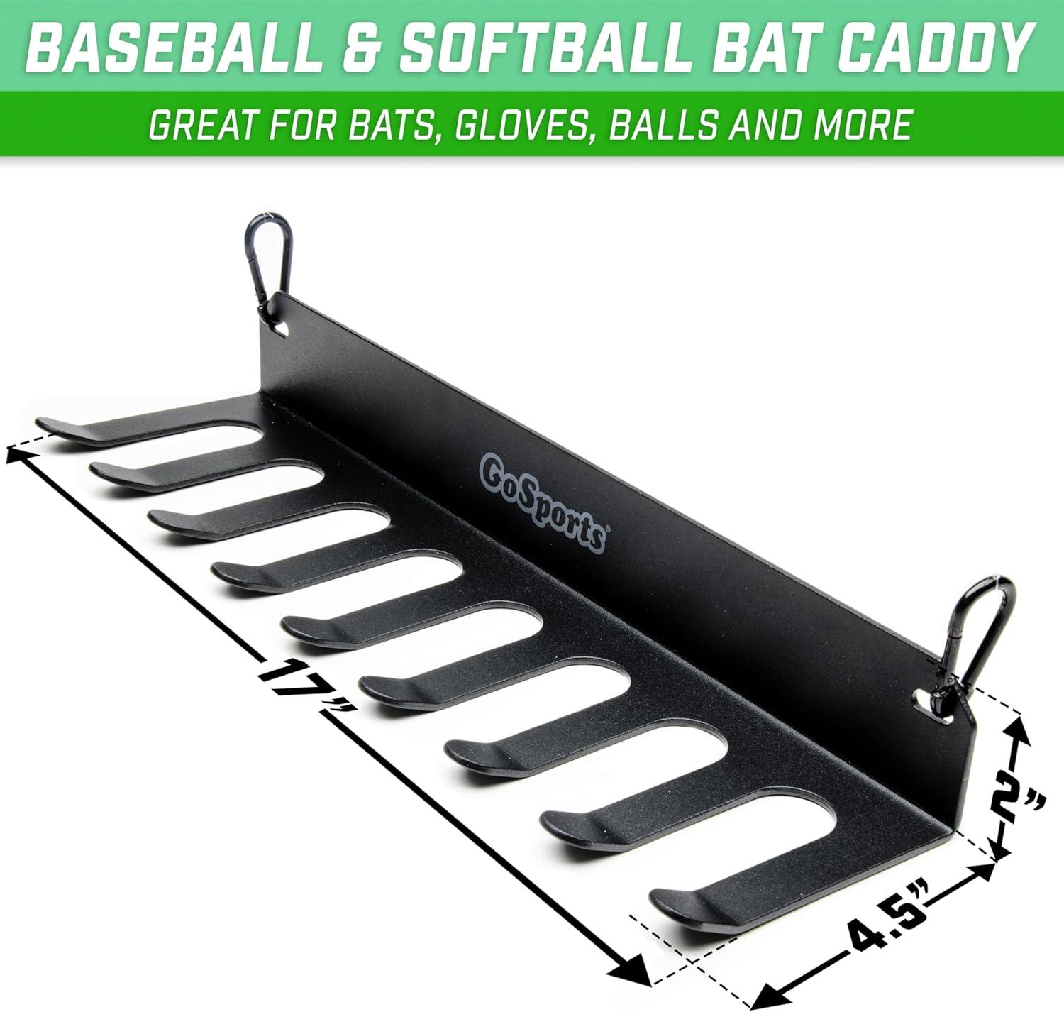 GoSports Baseball & Softball Bat Racks – Black or Red, Holds 16 Bats – Mount on Wall or Clip on Dugout Fence(Black)
