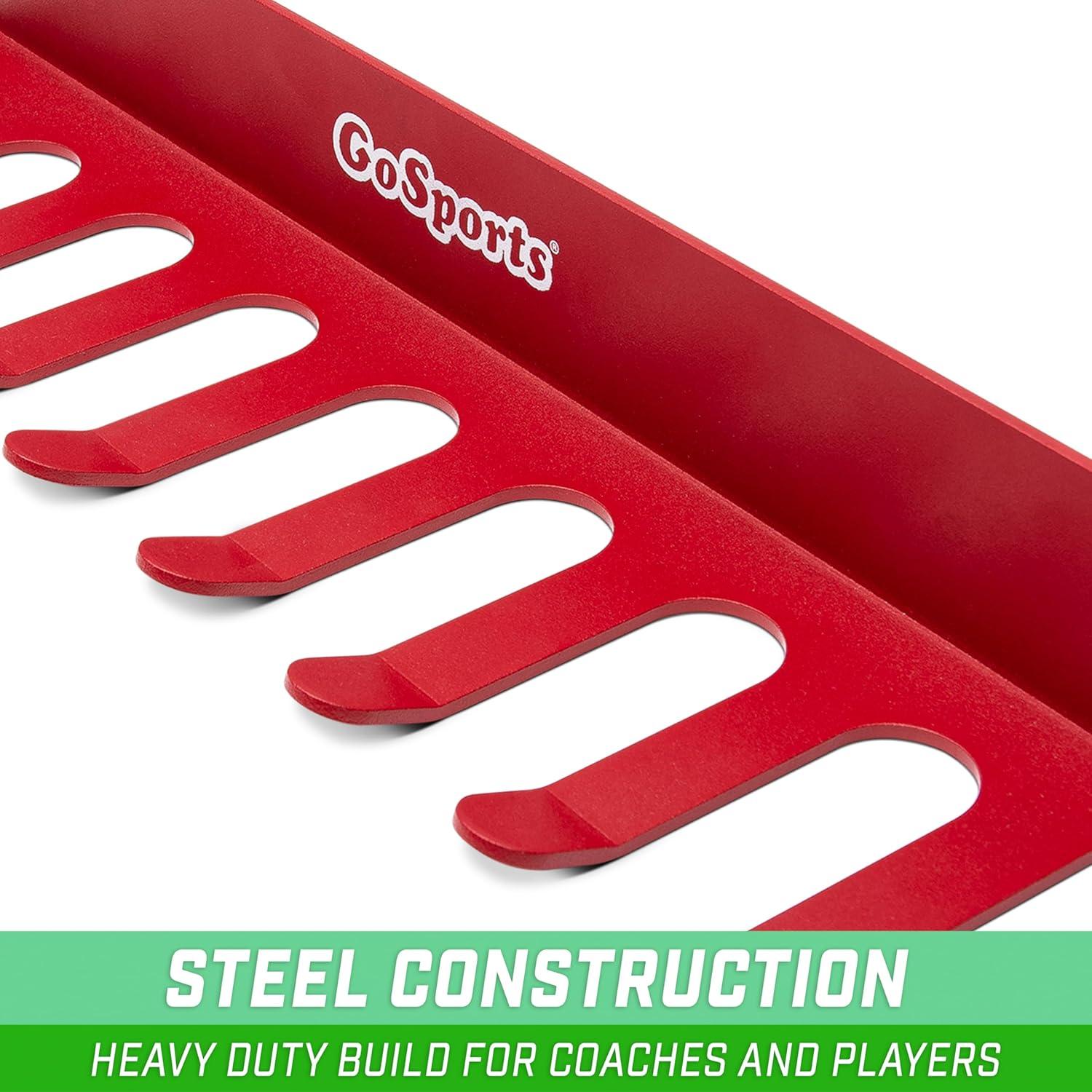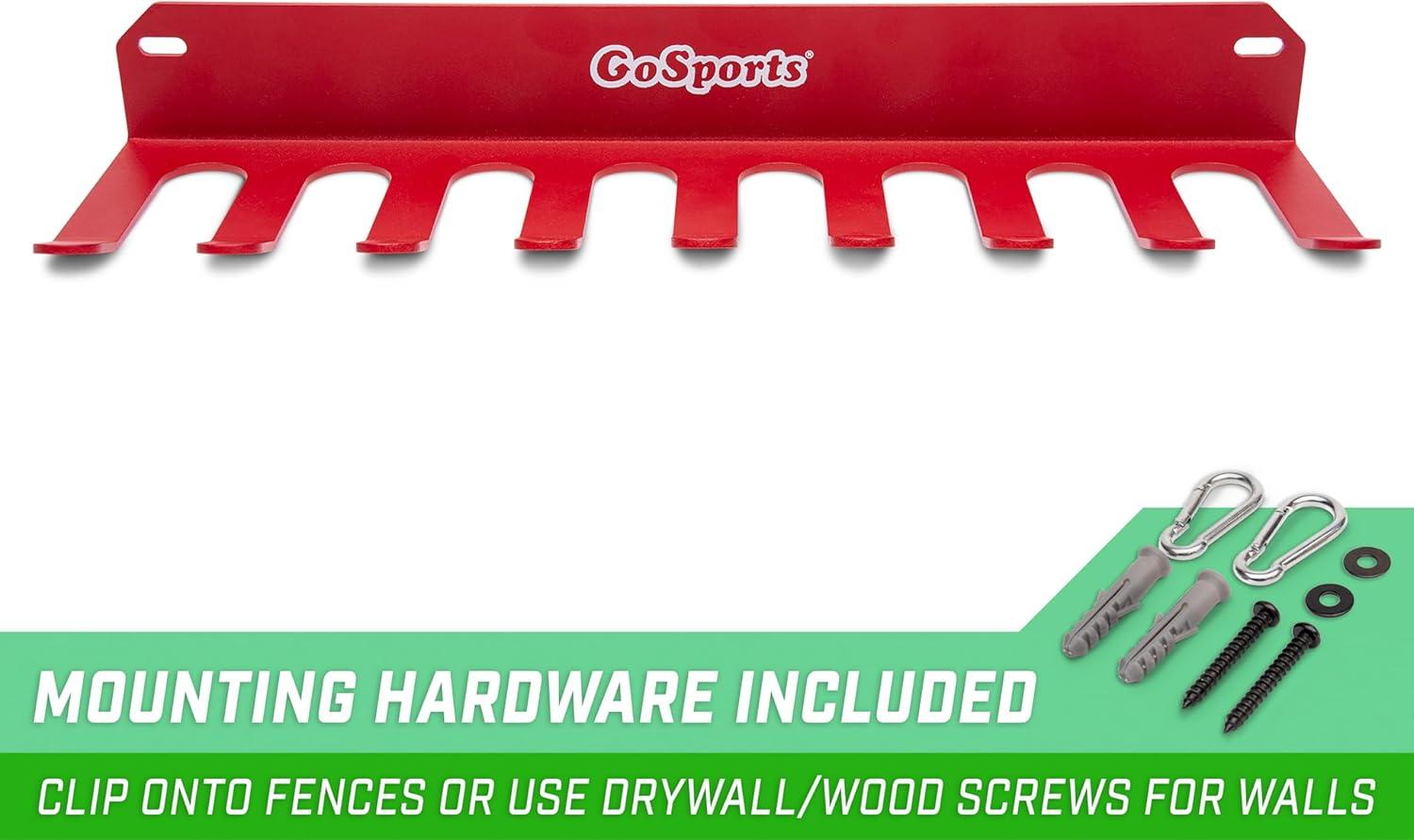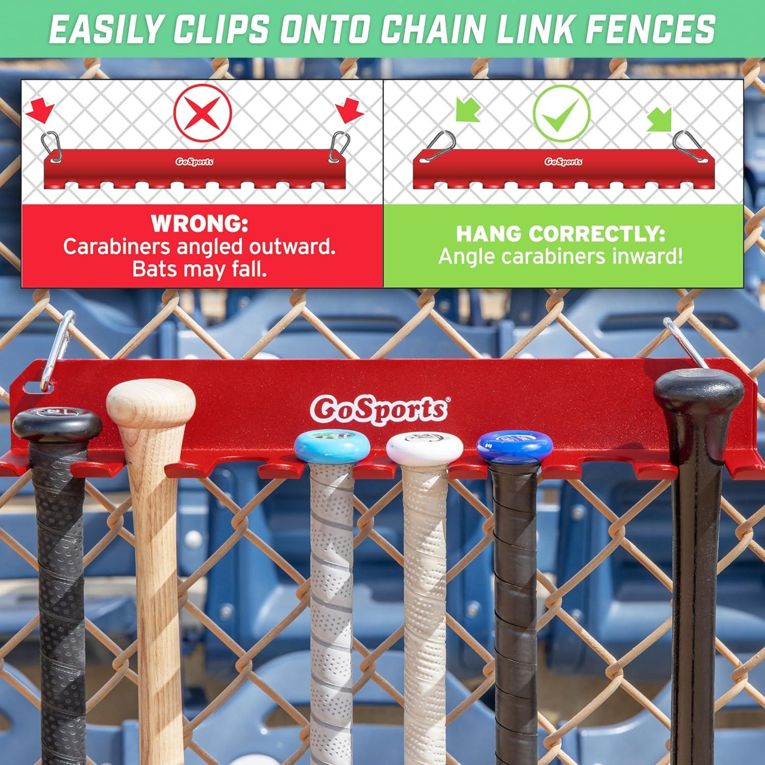 GoSports Baseball & Softball Bat Racks – Black or Red, Holds 16 Bats – Mount on Wall or Clip on Dugout Fence(Red)