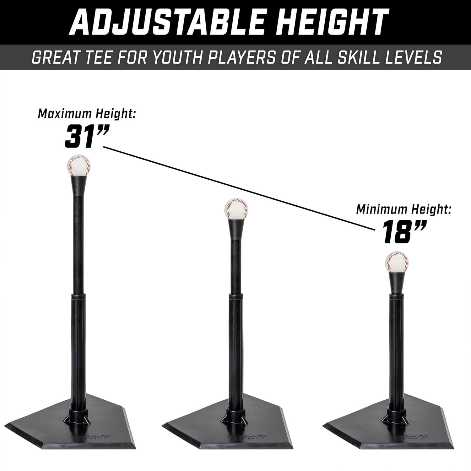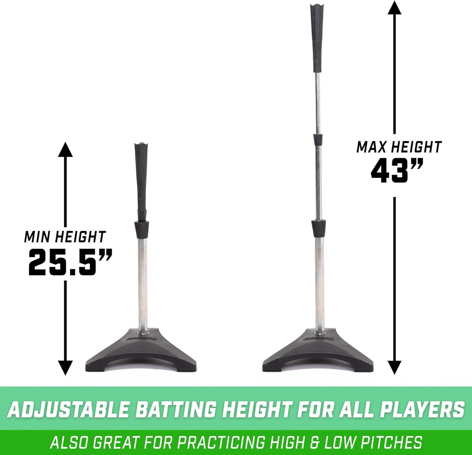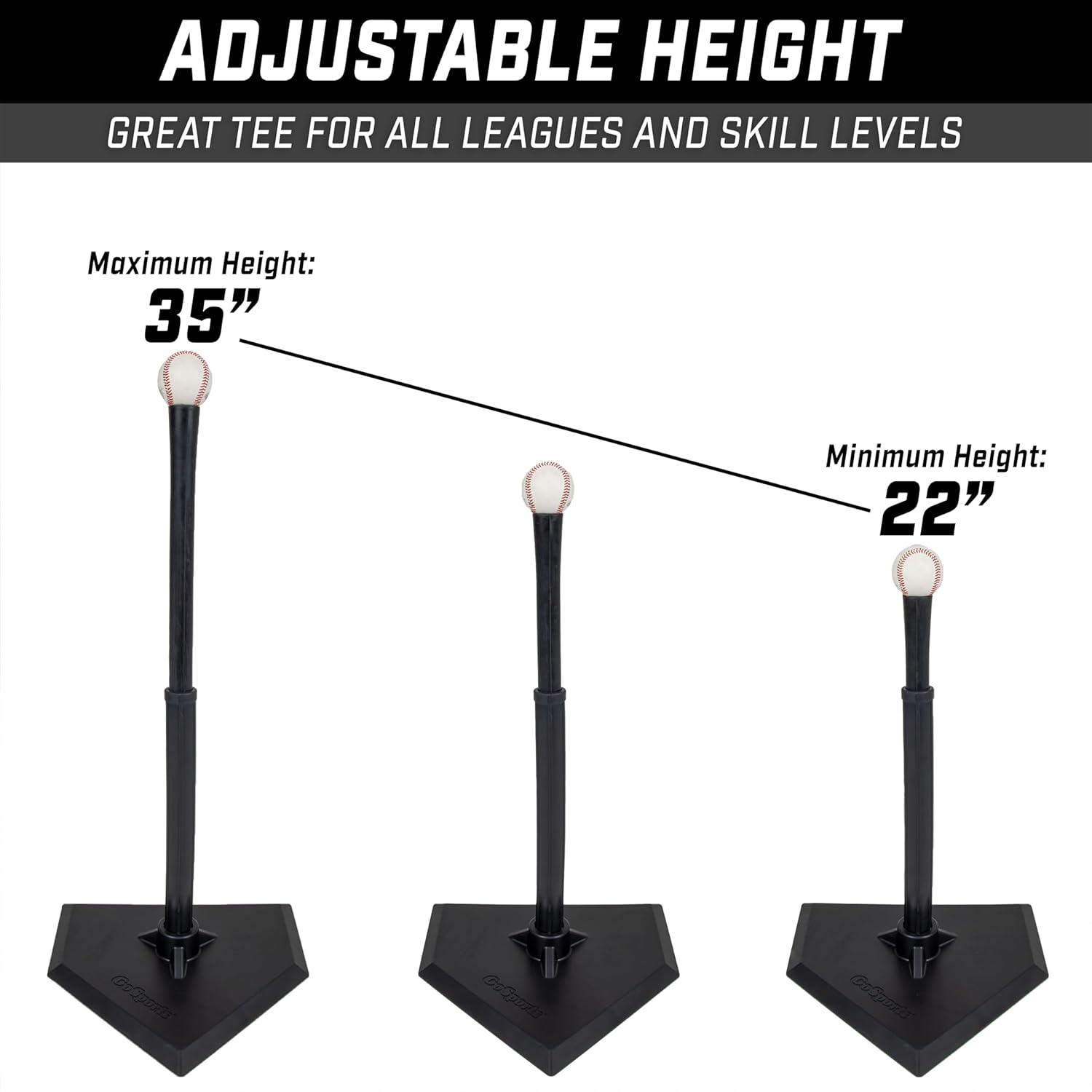 GoSports Baseball & Softball Batting Tees – Choose Jr. or Standard – Adjustable Rubber Hitting Tee(Standard Black)