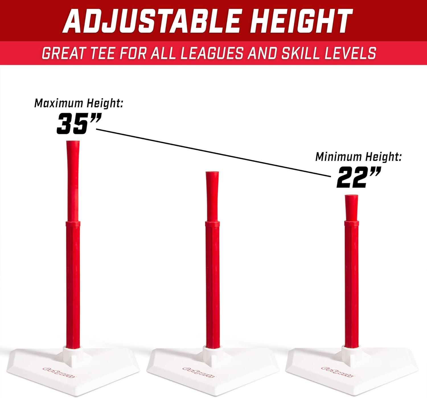 GoSports Baseball & Softball Batting Tees – Choose Jr. or Standard – Adjustable Rubber Hitting Tee(Standard Red)
