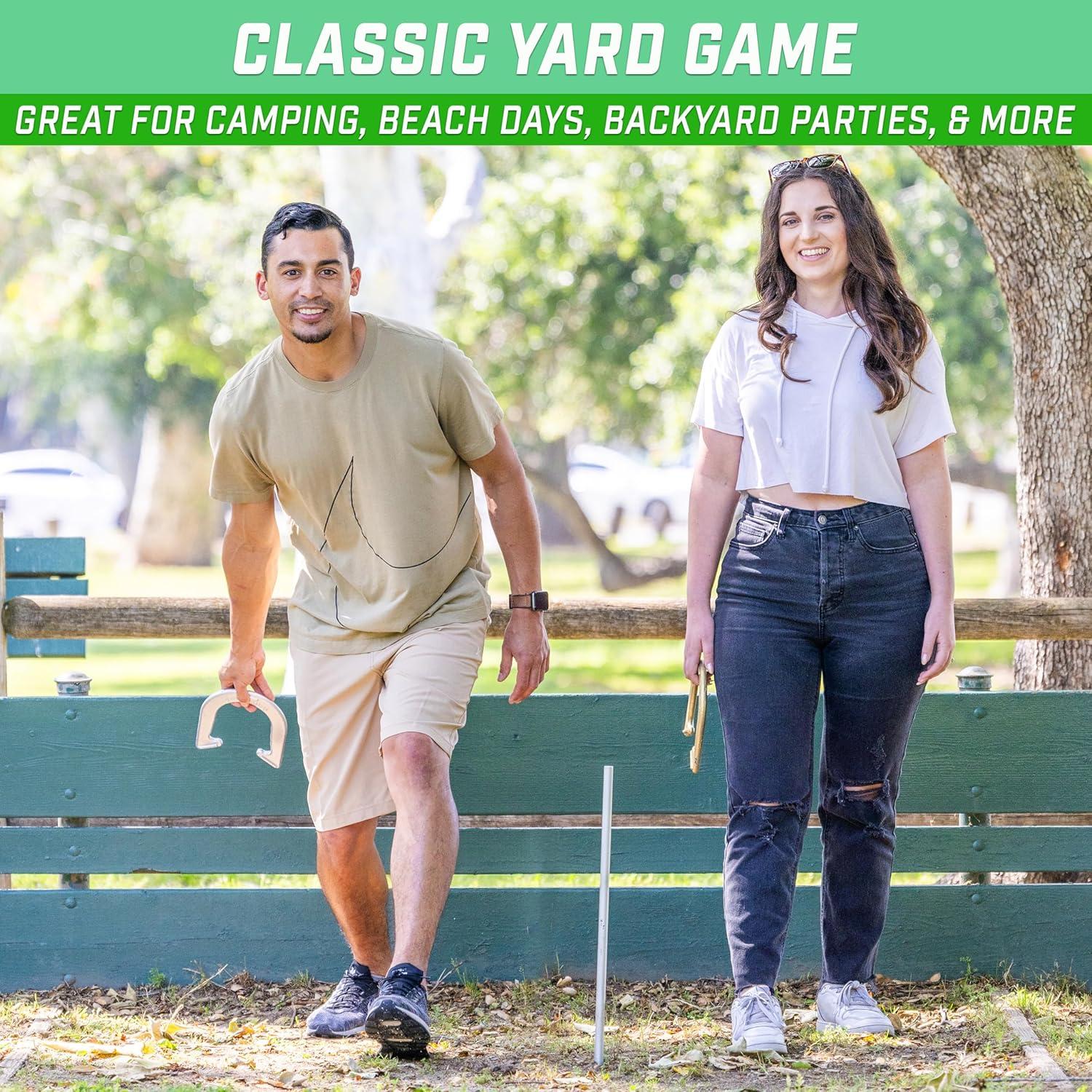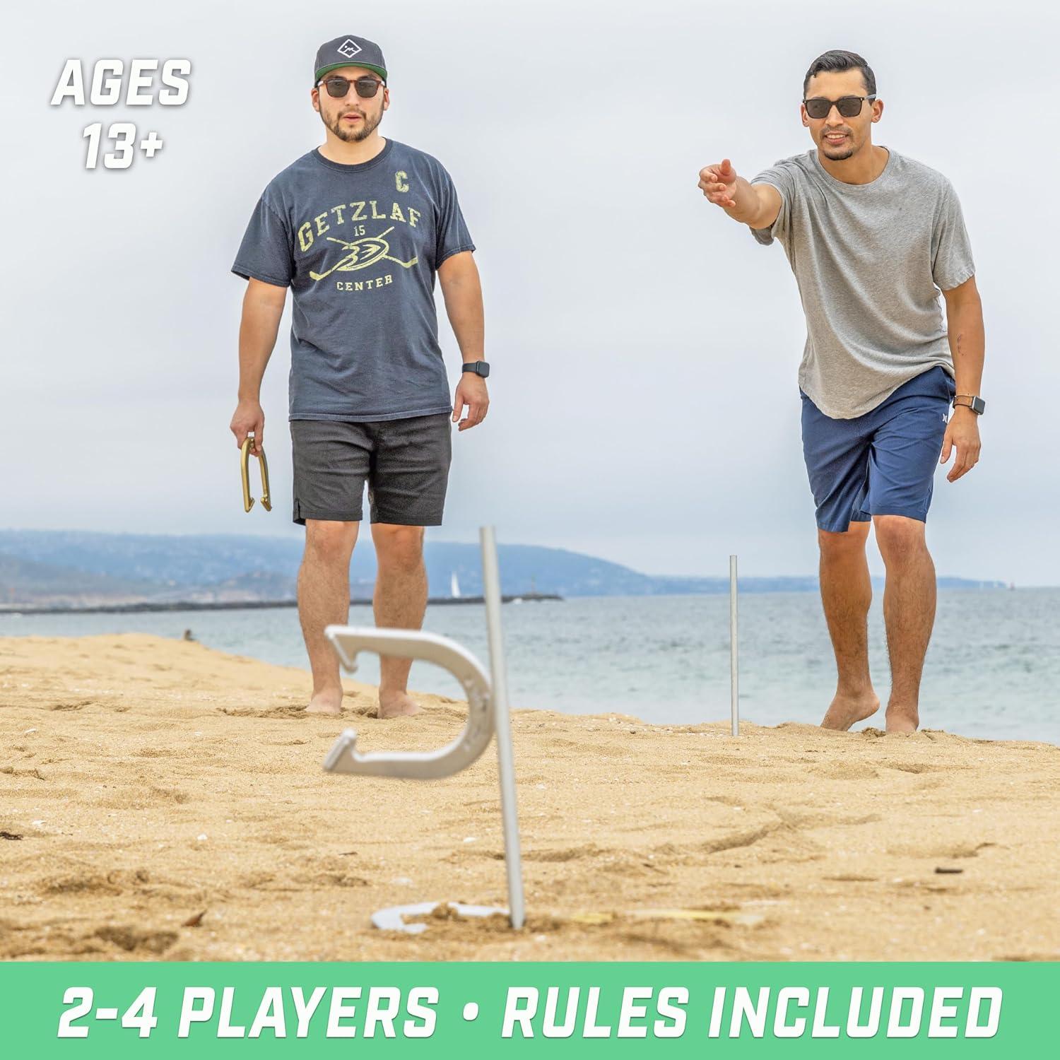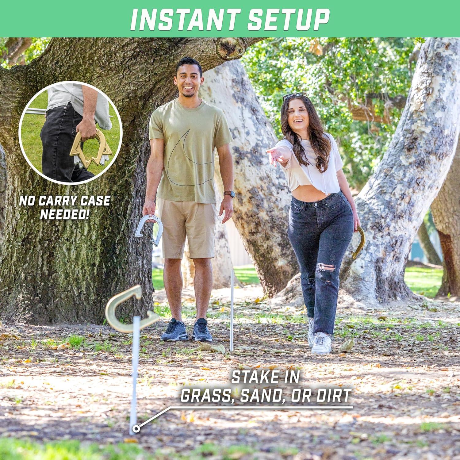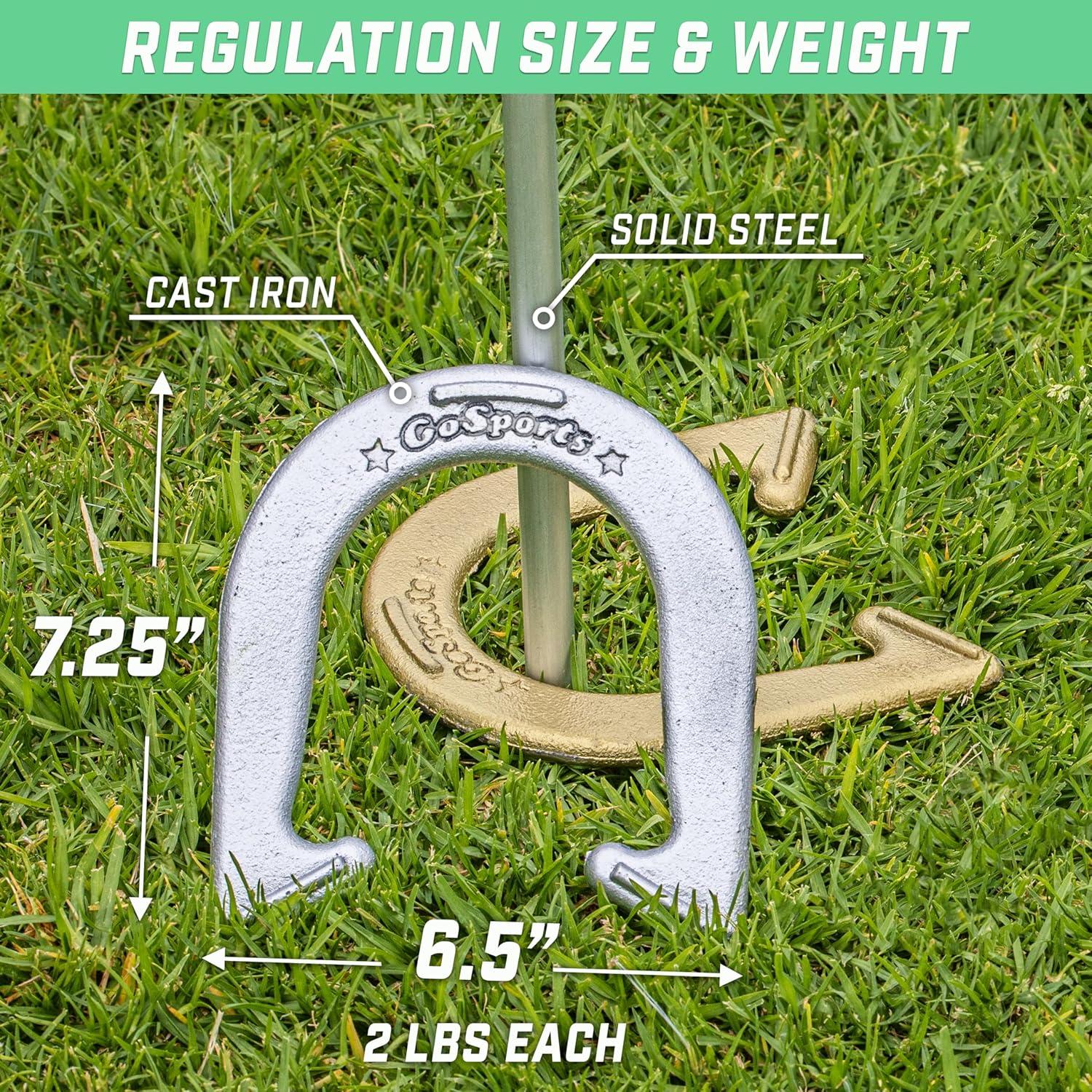 GoSports Steel Horseshoes Outdoor Game Set – Gold & Silver or Red & Blue – Official Size and Weight(Gold & Silver)