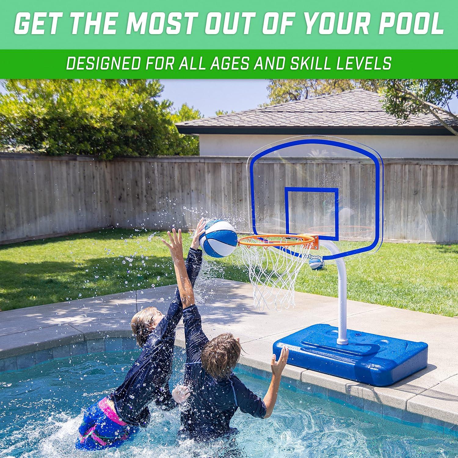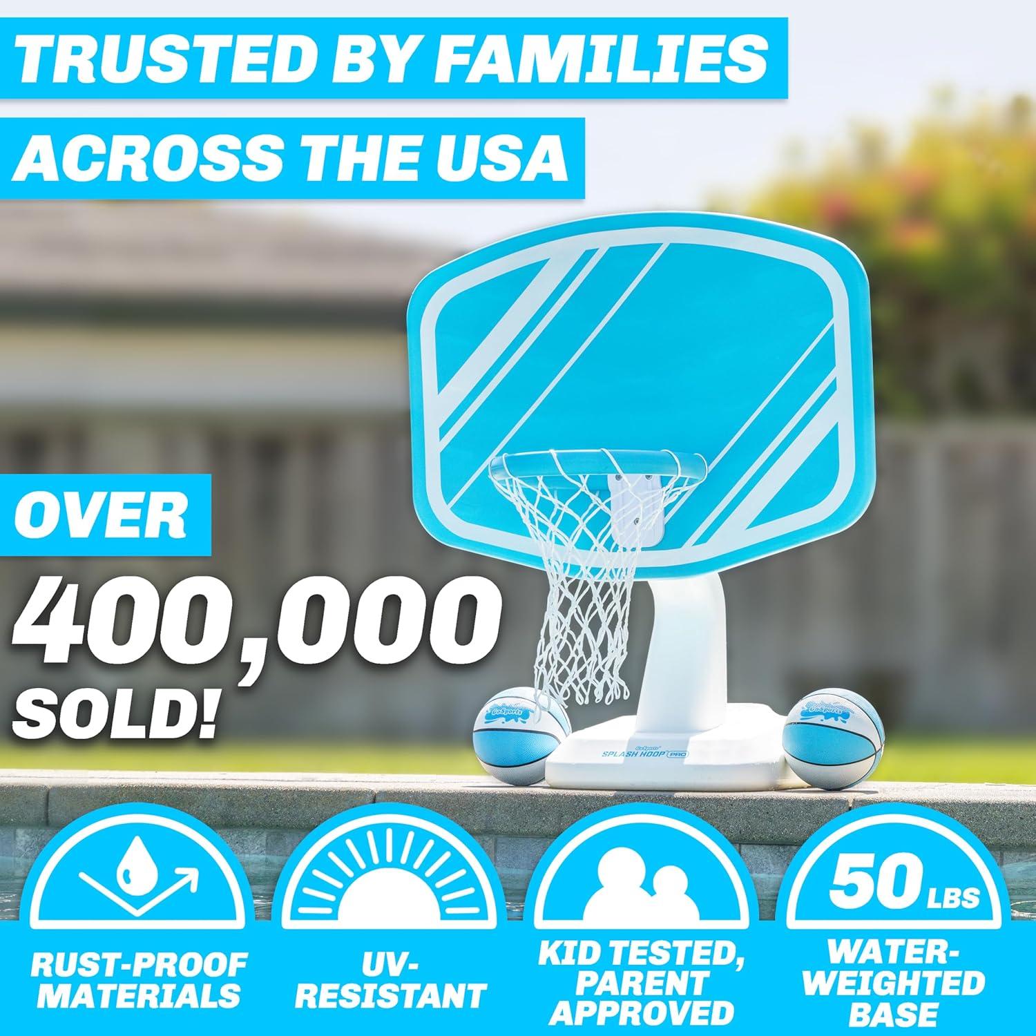 GoSports Splash Hoop PRO Swimming Pool Basketball Game, Includes Poolside Water Basketball Hoop, 2 Balls and Pump – Aqua(Aqua)