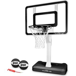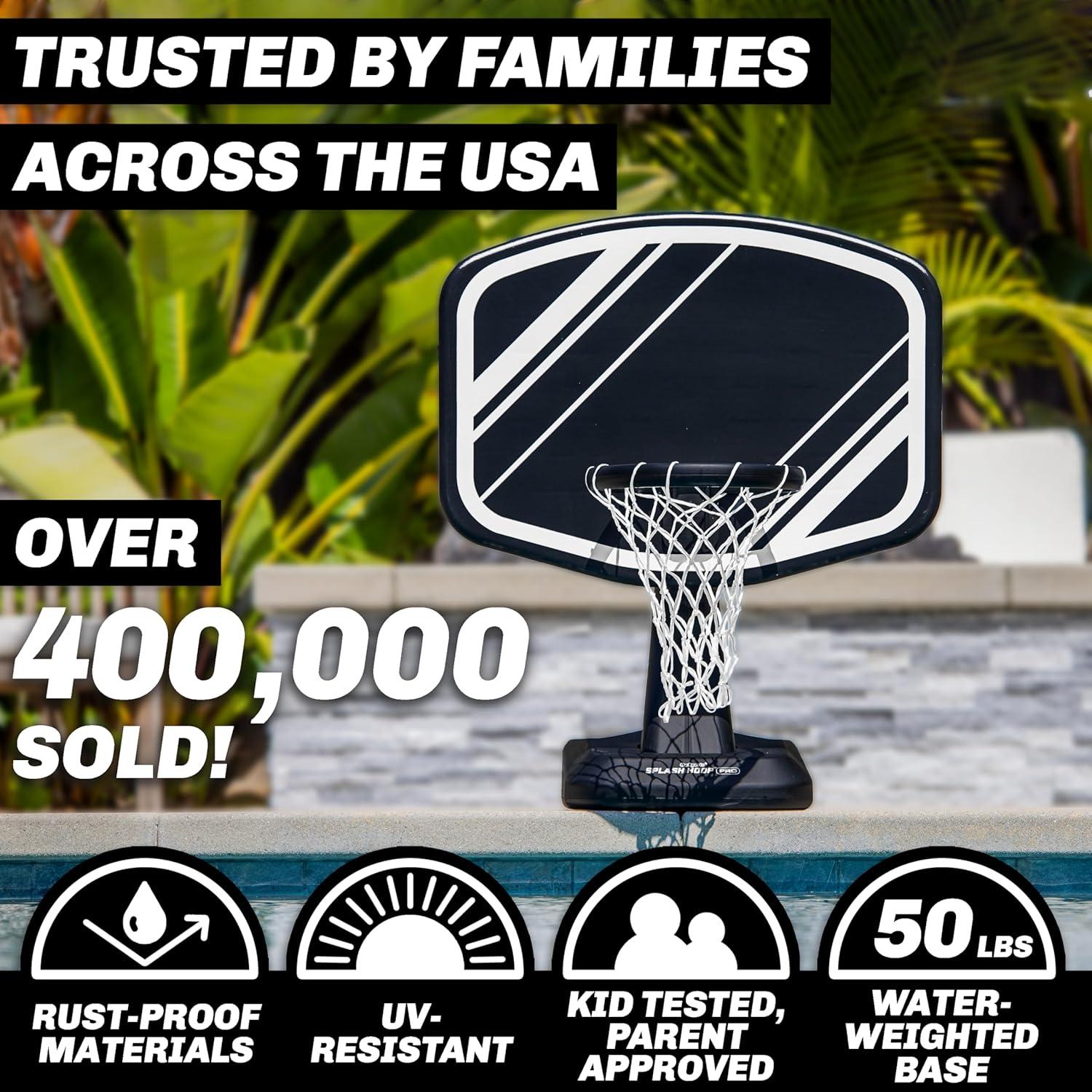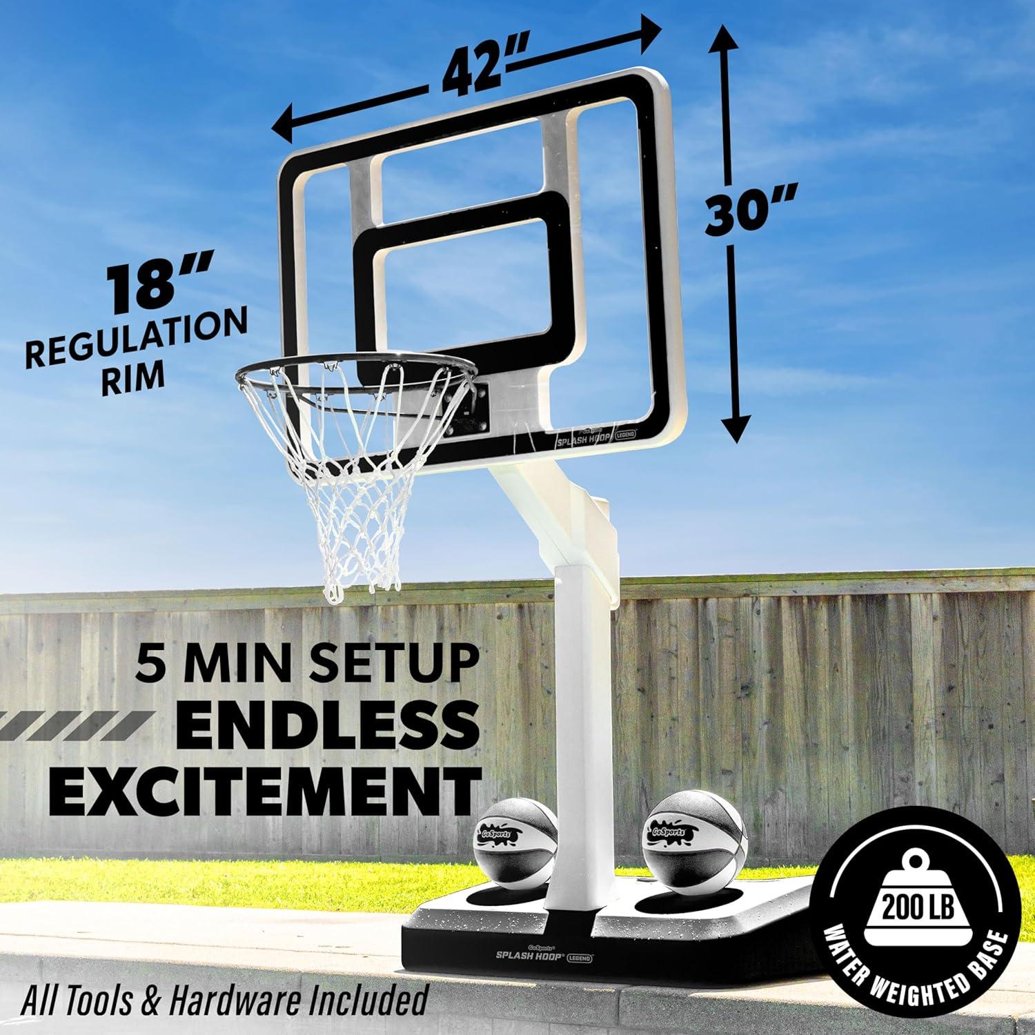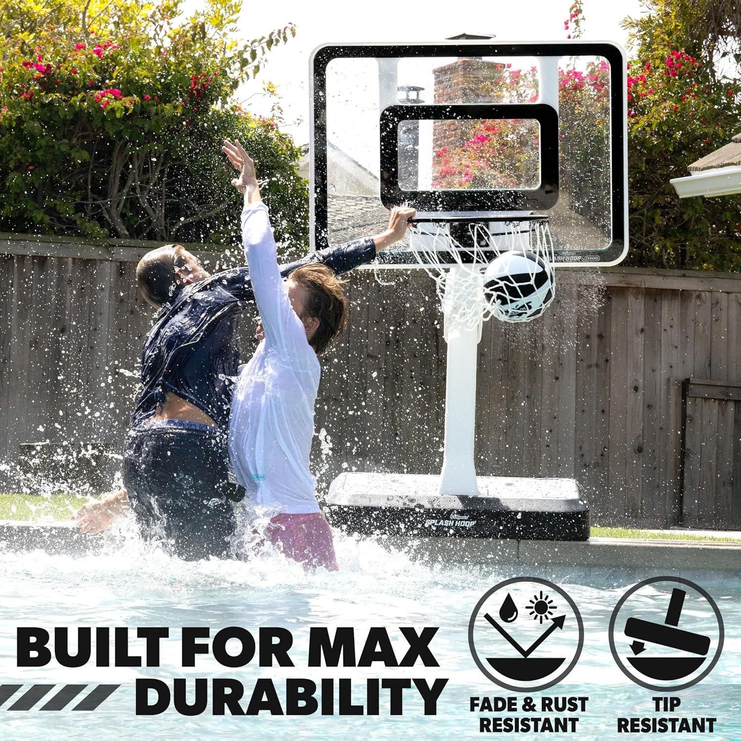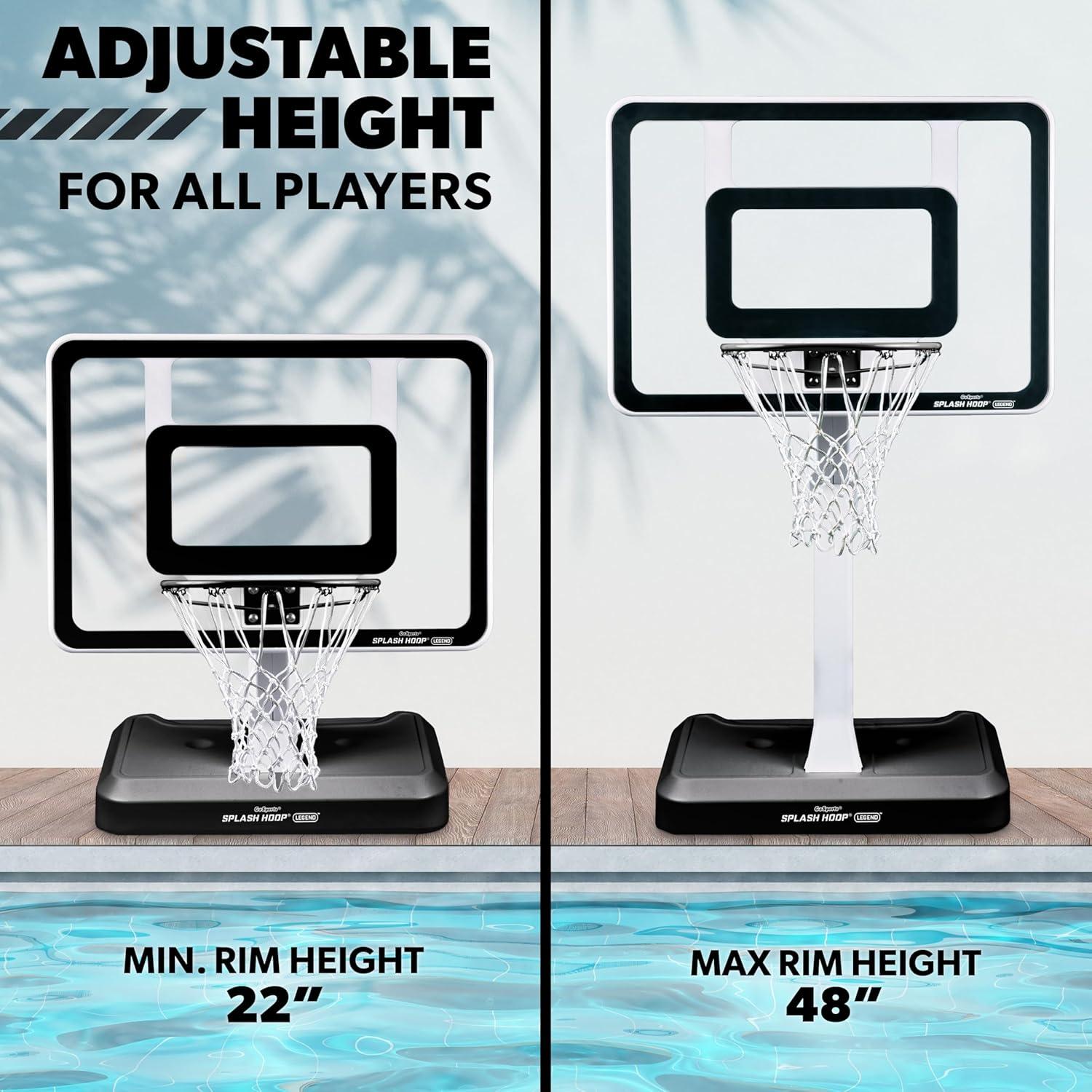 GoSports Splash Hoop Elite – Adjustable Height or Fixed Post – Pool Hoop Basketball Game with Water Weighted Base, Regulation Steel Rim and 2 Pool Basketballs(Elite Adjustable – Black)