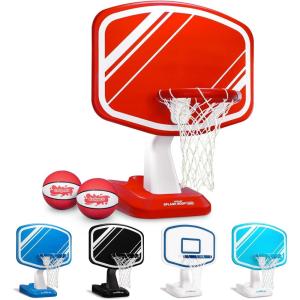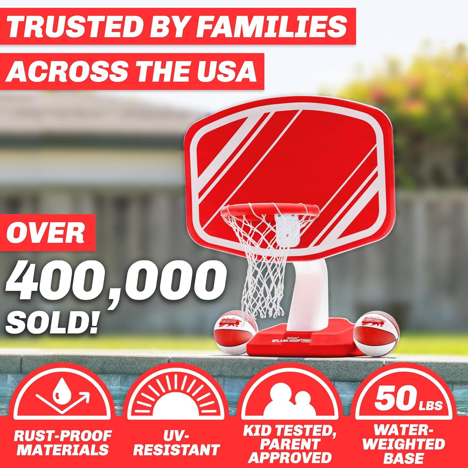 GoSports Splash Hoop PRO Swimming Pool Basketball Game, Includes Poolside Water Basketball Hoop, 2 Balls and Pump – Aqua(Red)