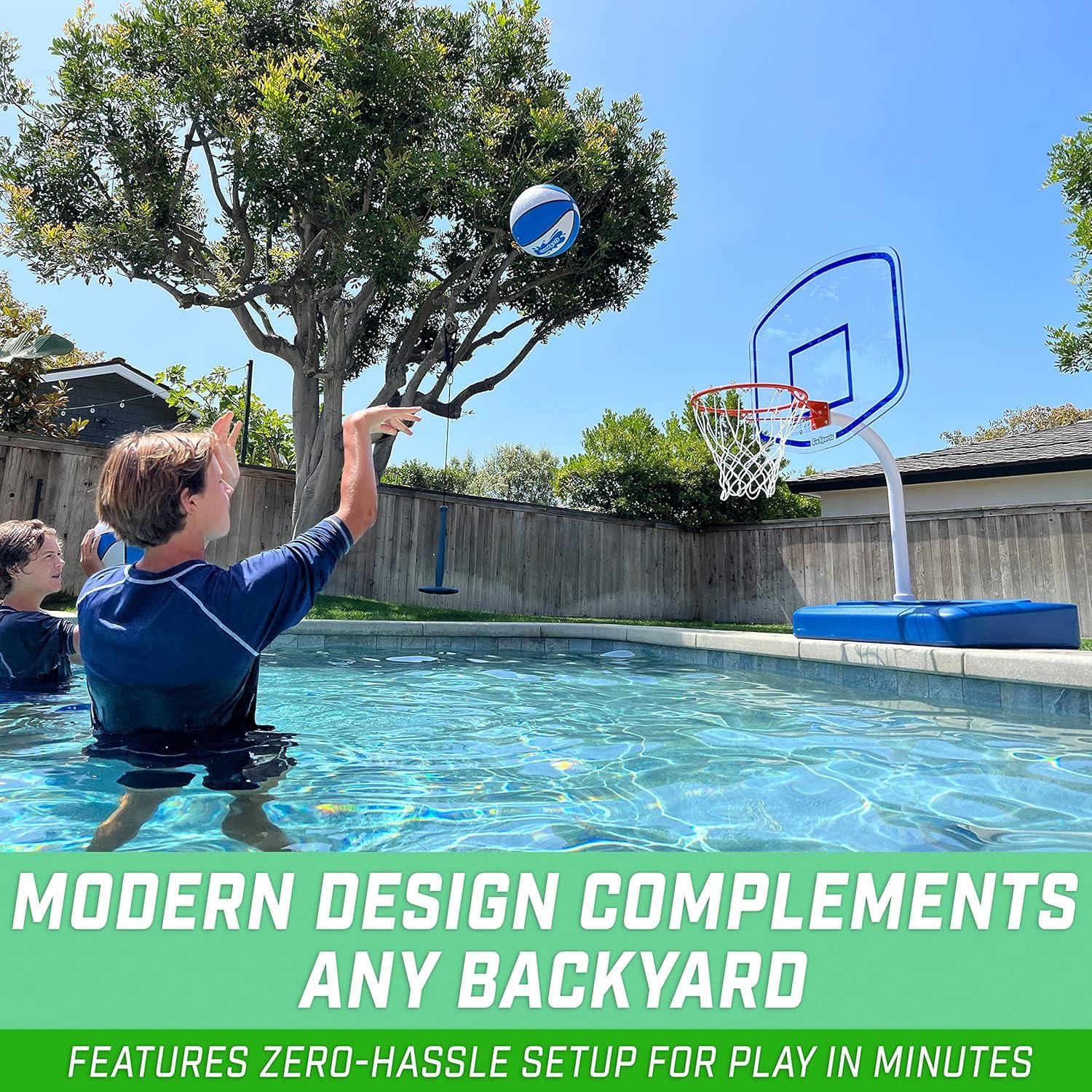 GoSports Splash Hoop Elite 2-in-1 Full Court Pool Basketball & Volleyball Game Set
