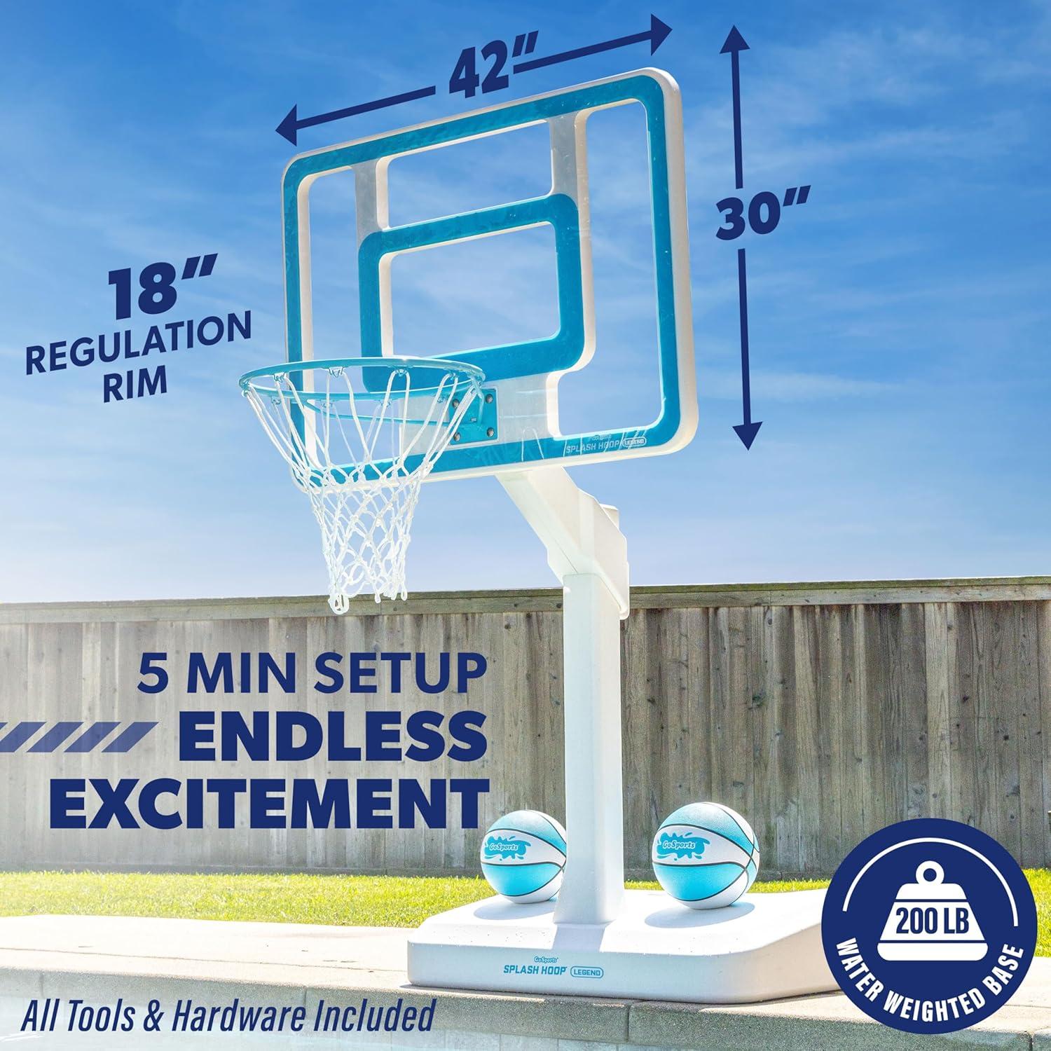 GoSports Splash Hoop Legend – Aqua or Black – Pool Basketball Hoop Game with Water Weighted Base, Adjustable Height, and Regulation Steel Rim(Aqua)